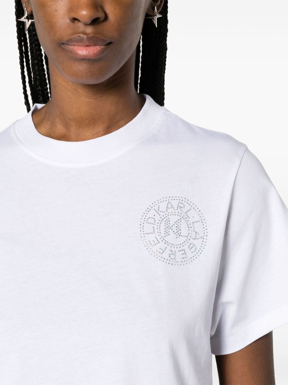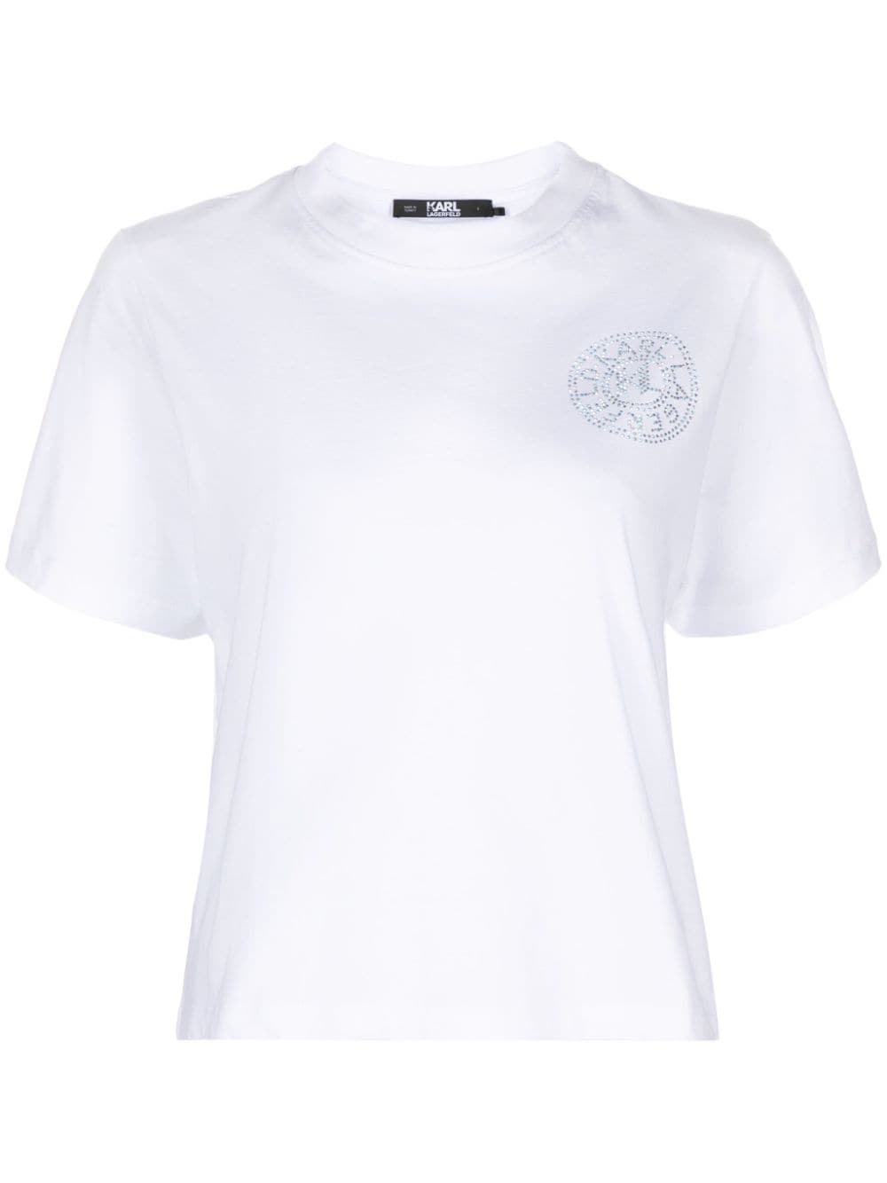 - rhinestone-embellished logo at the chest