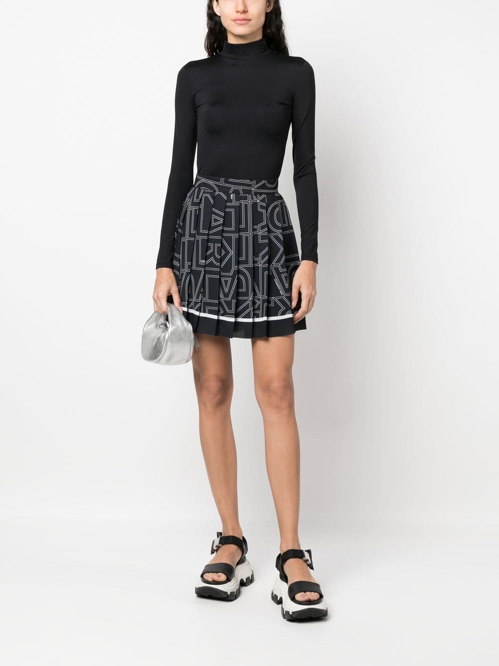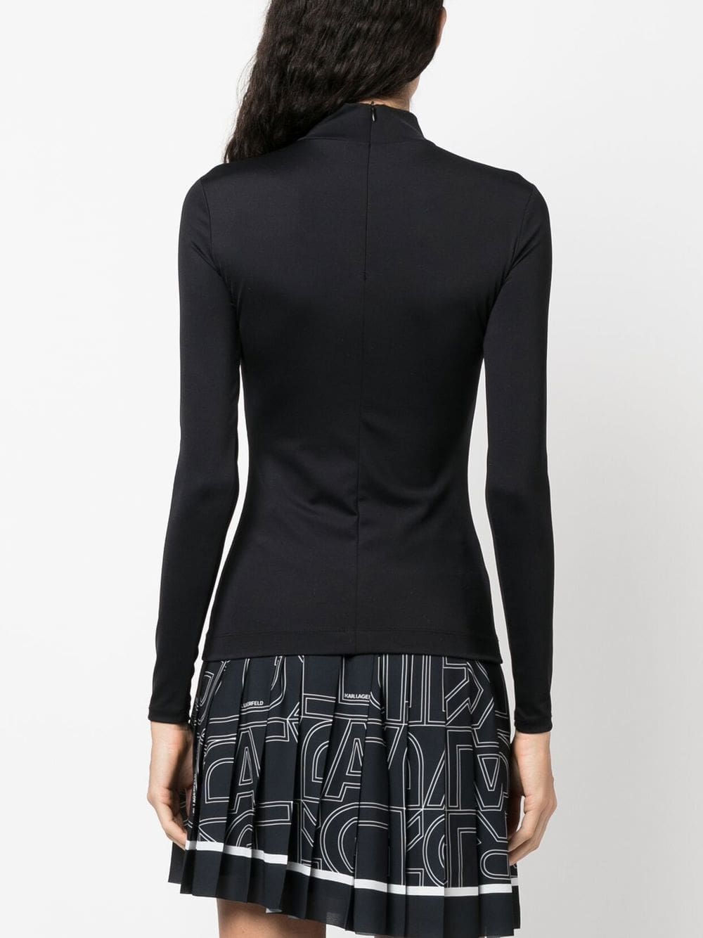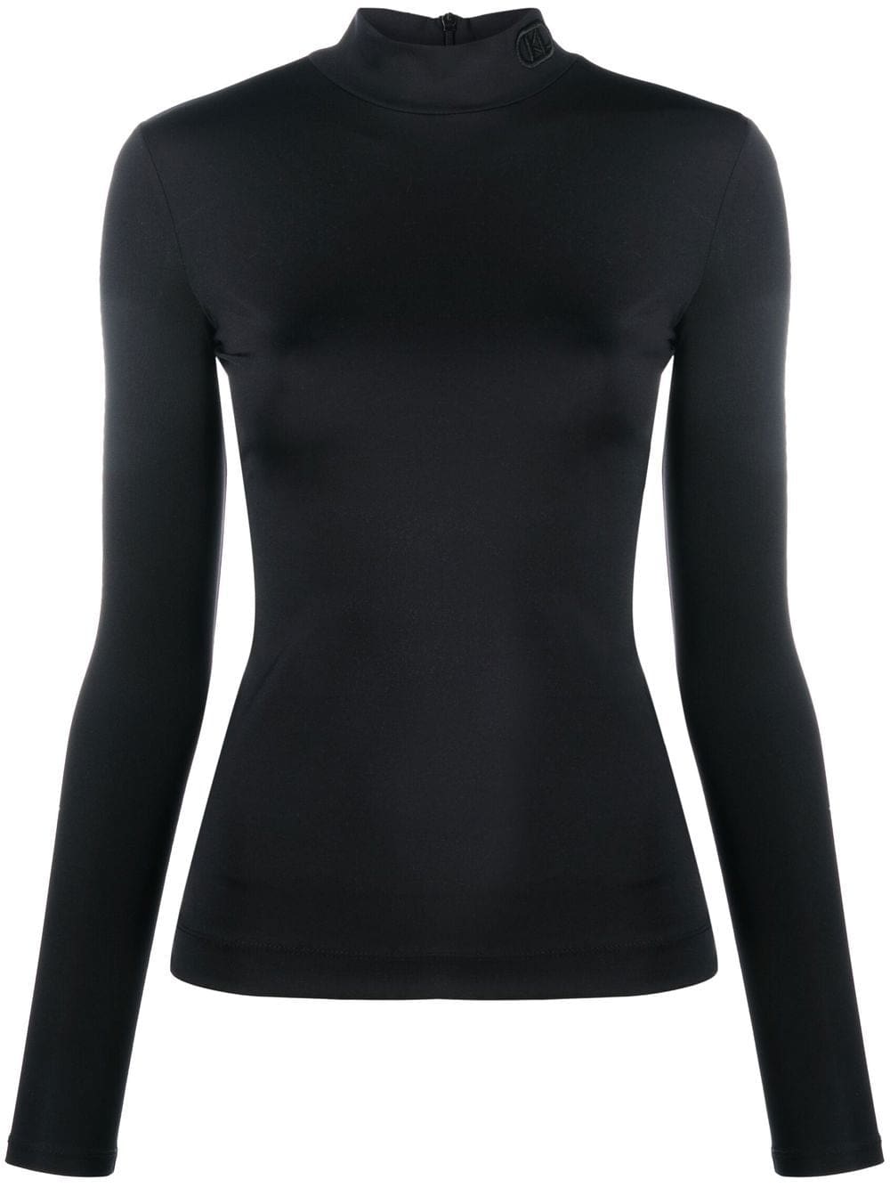 black stretch-design logo-embroidered collar high neck concealed rear zip fastening long sleeves straight hem