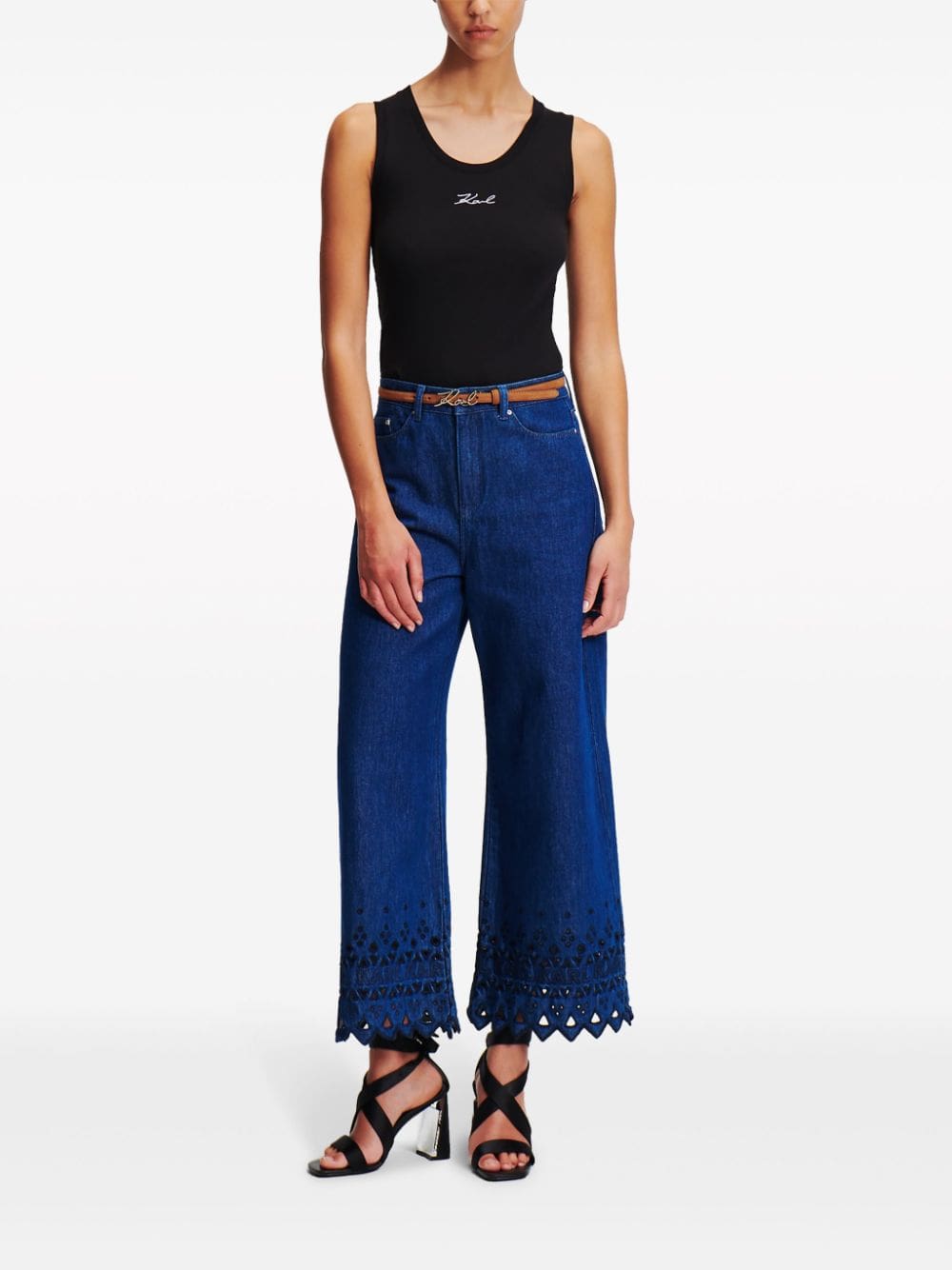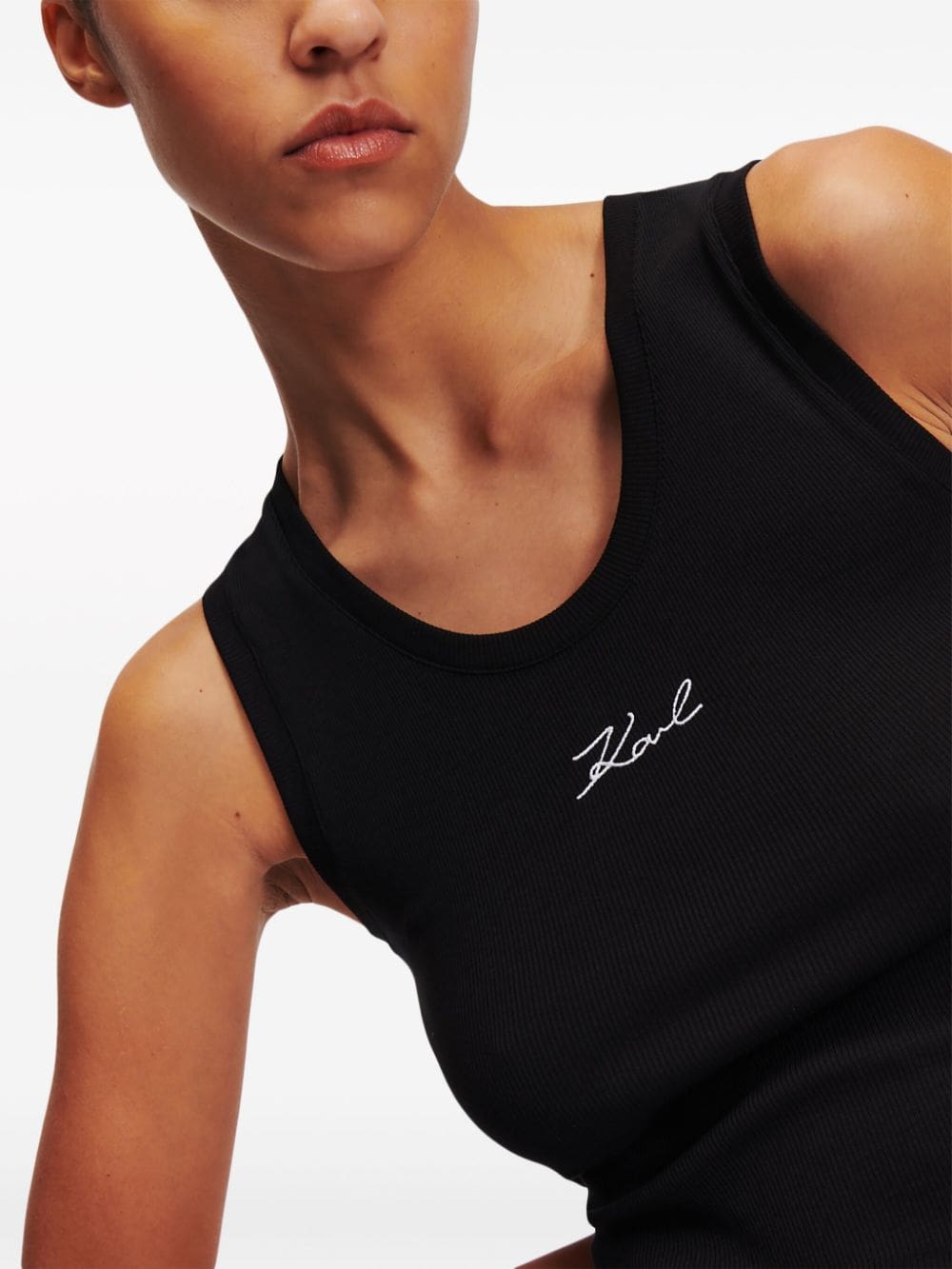 logo-embroidered ribbed tank top