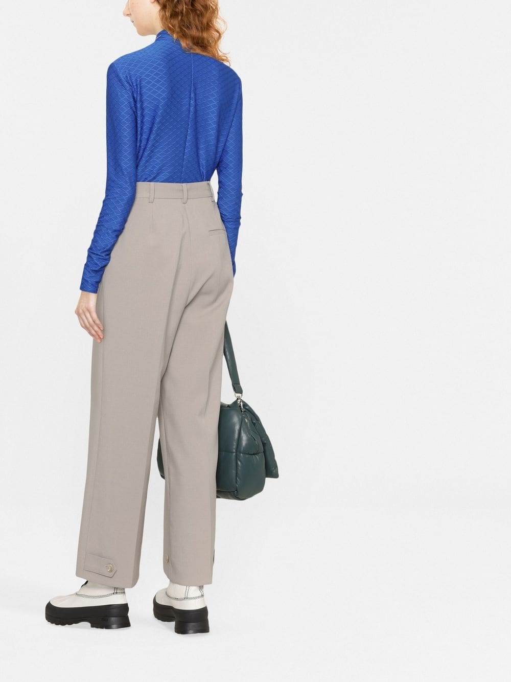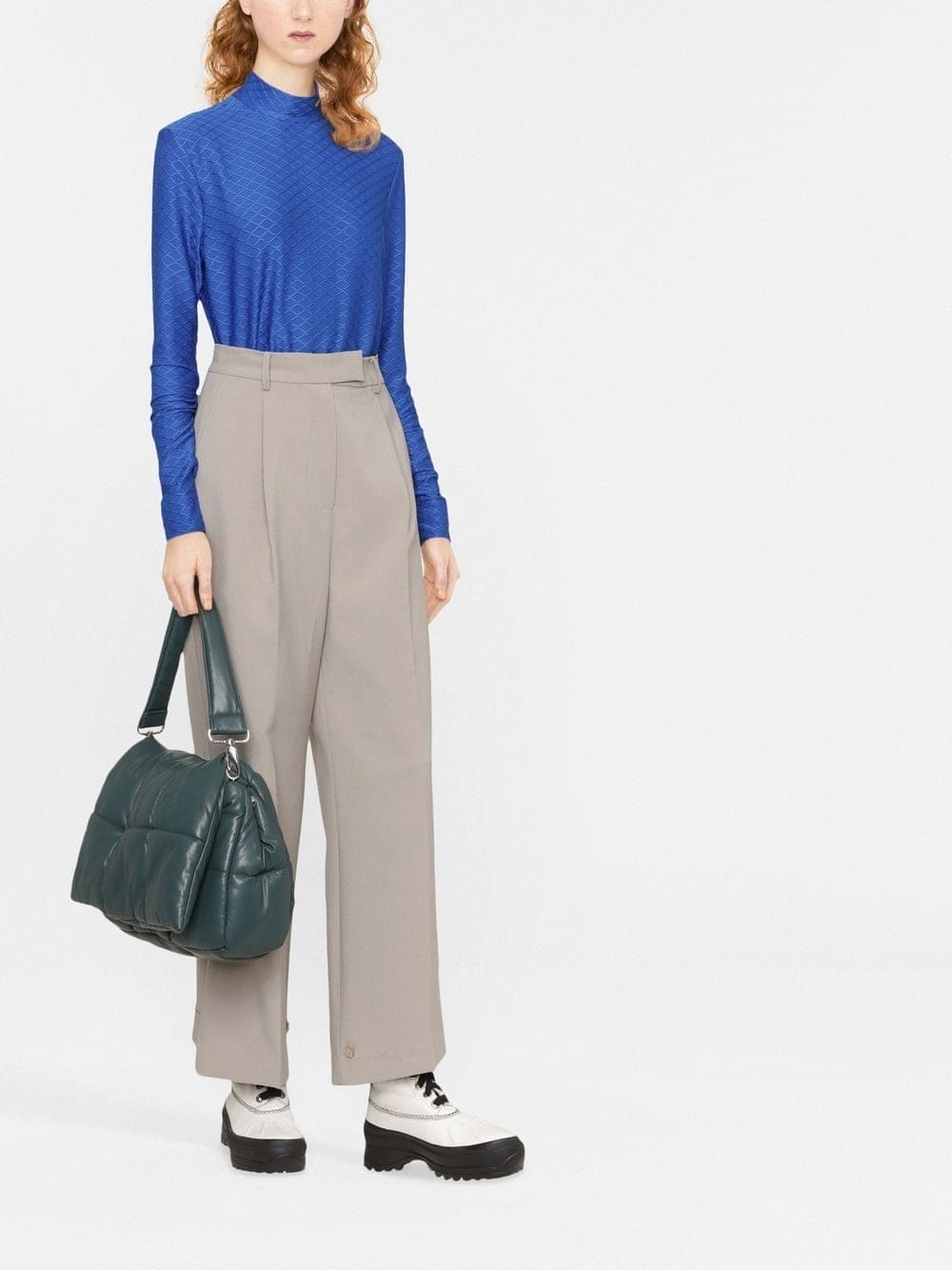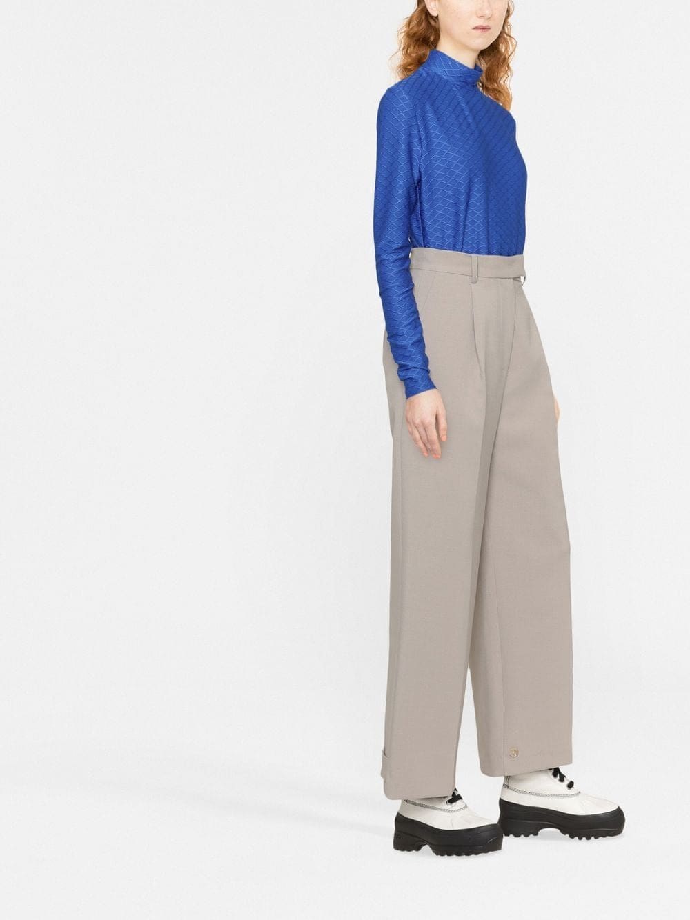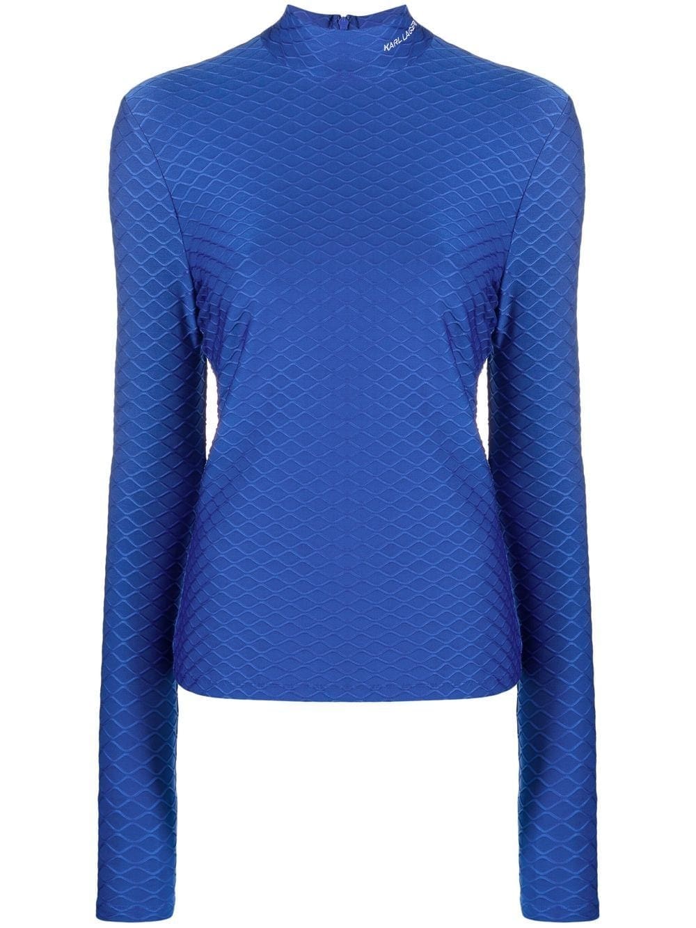 Crafted with a textured finish, this royal blue long-sleeved top from Karl Lagerfeld is detailed with the brand's logo embroidered at the mock neck.