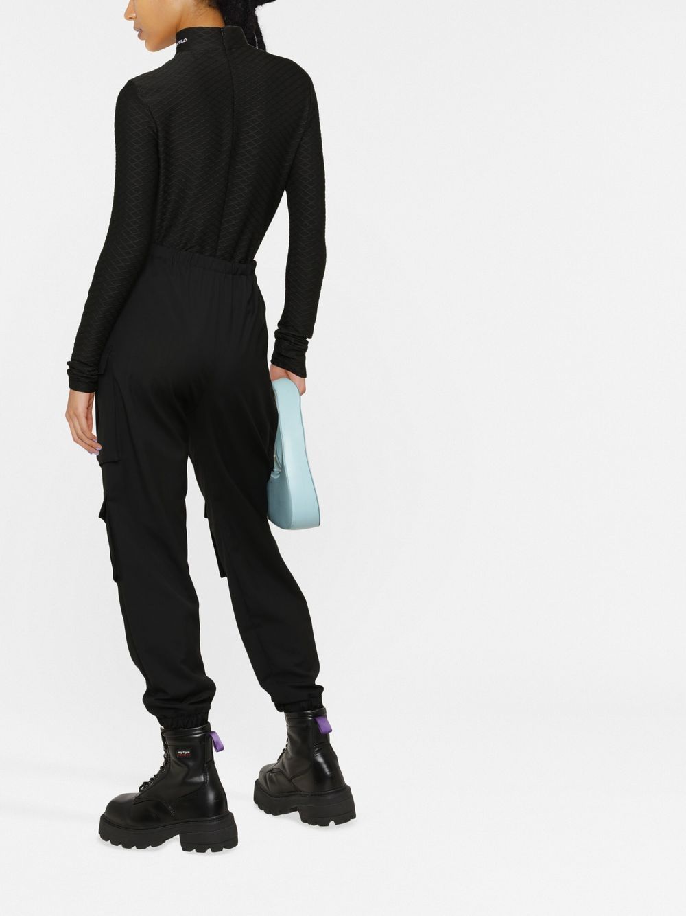 Crafted with a textured finish, this black long-sleeved top from Karl Lagerfeld is detailed with the brand's logo embroidered at the mock neck.
