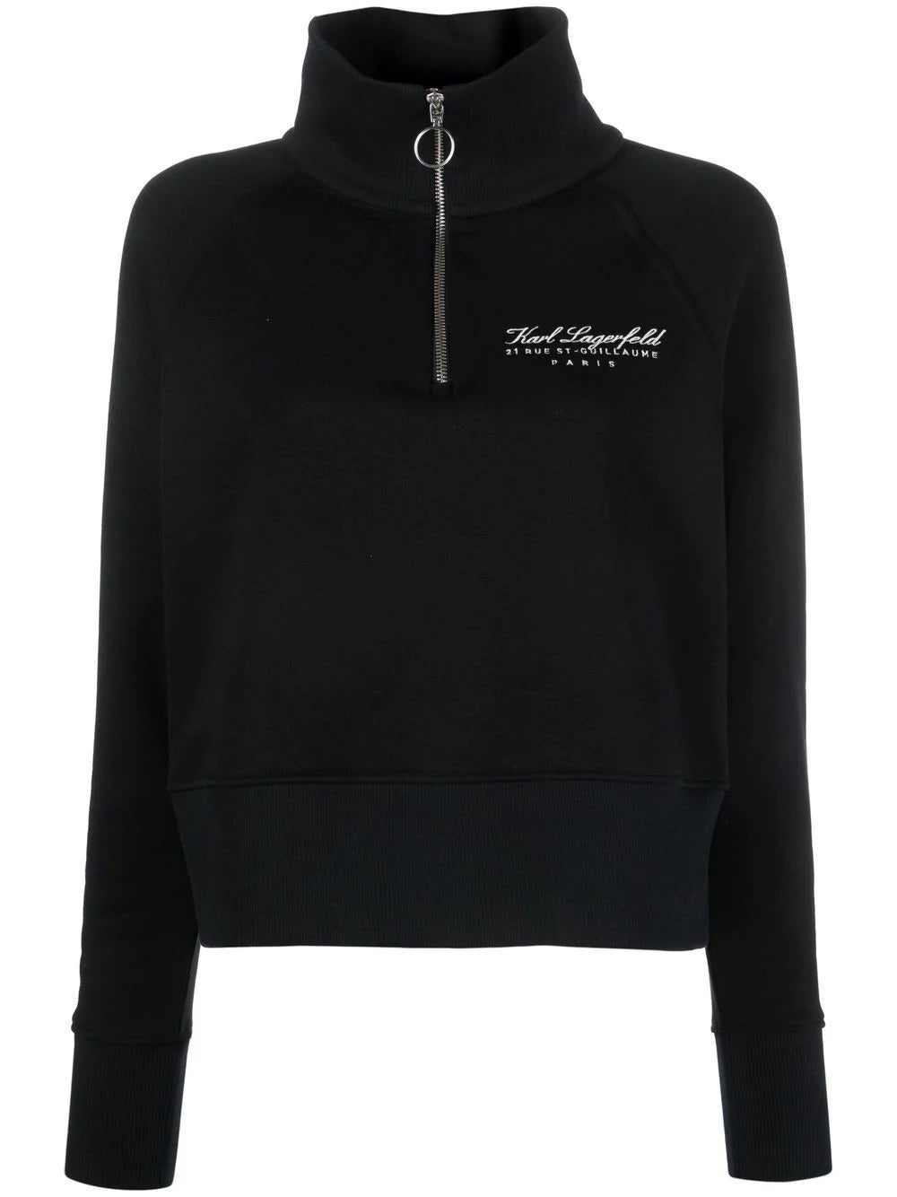 Karl Lagerfeld demonstrates its affinity for branded designs with this sweatshirt. In a jet black hue, it's punctuated with the brand's signature at the chest in a contrasting white hue.