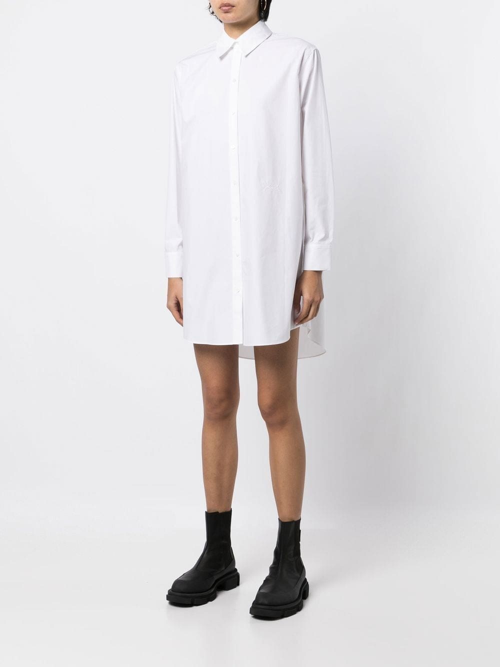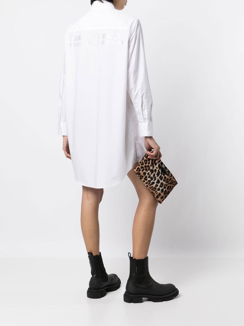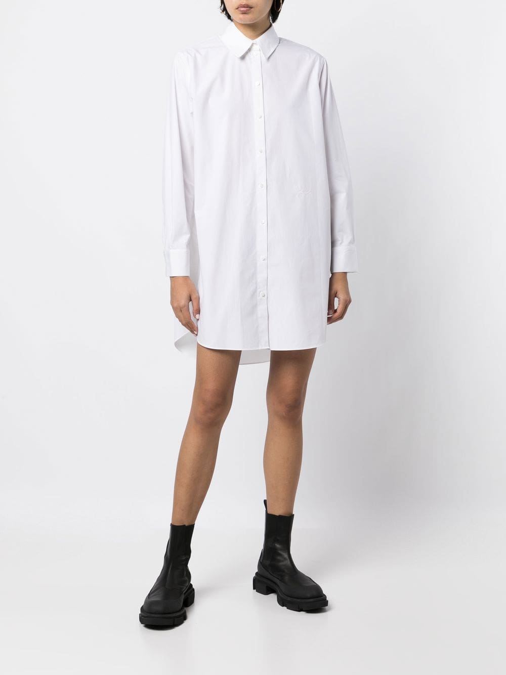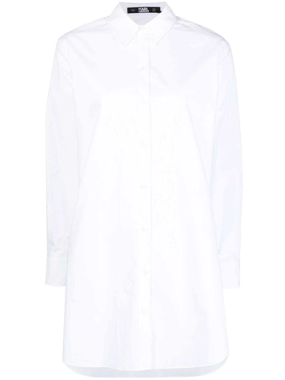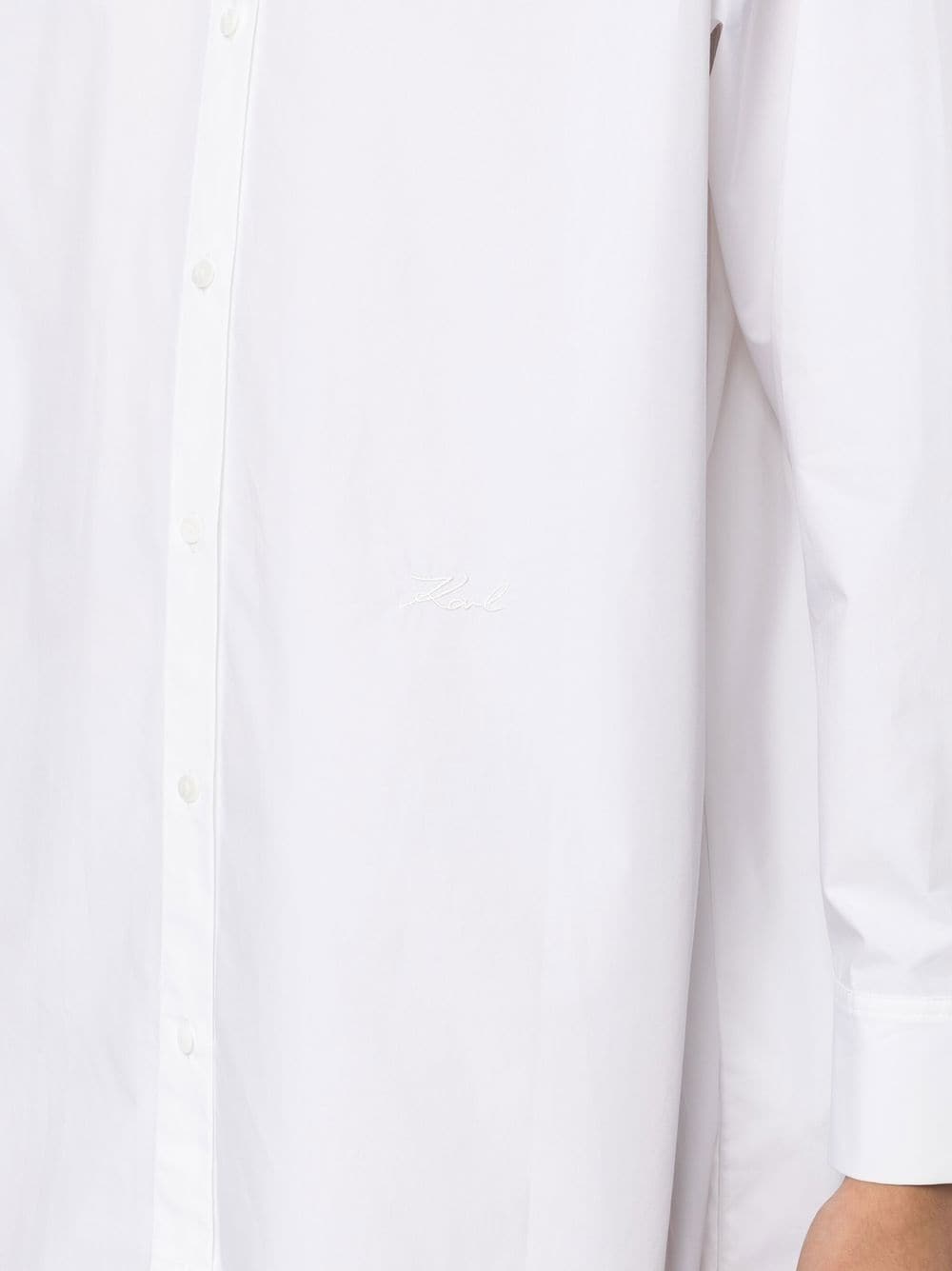 white cotton logo print to the rear long sleeves long length classic collar front button fastening