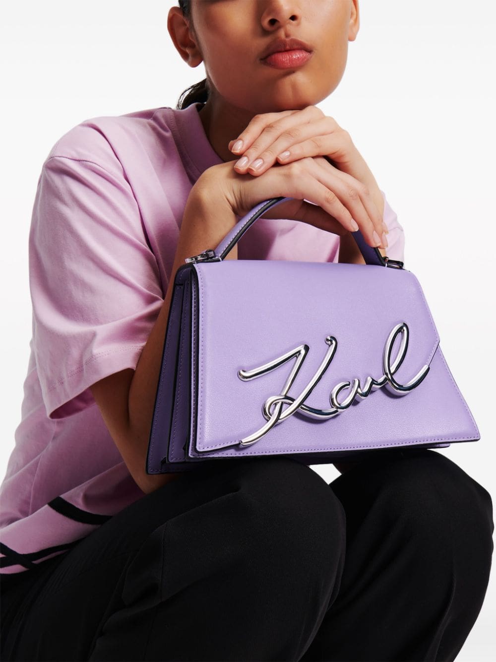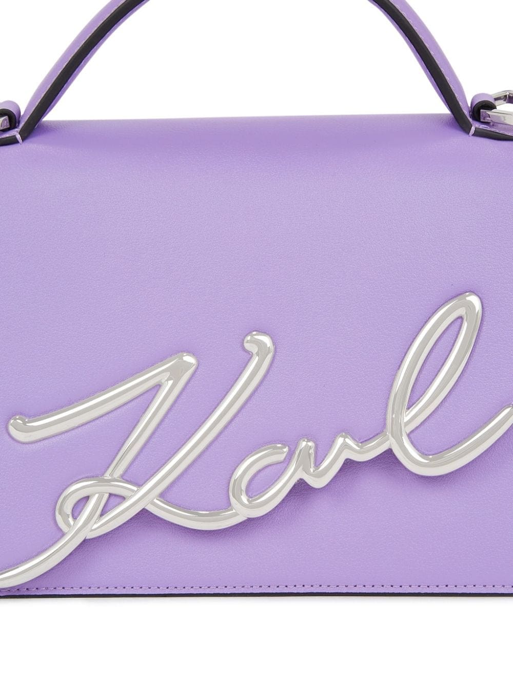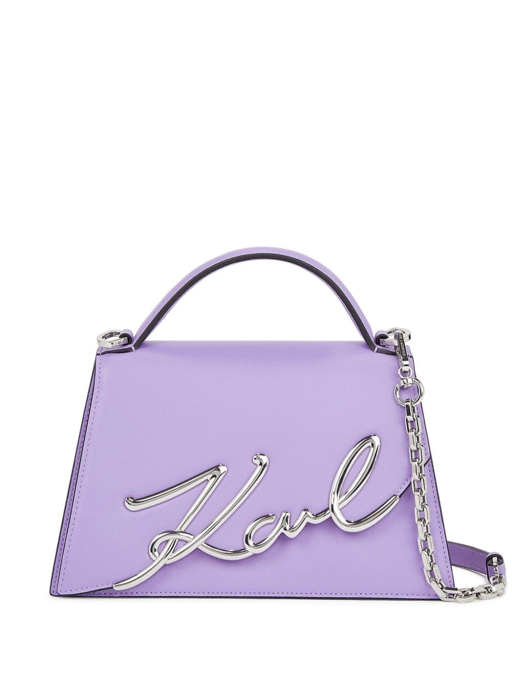 Karl Lagerfeld presents this K/Signature 2.0 crossbody bag in a mood-boosting purple hue. Its trapeze silhouette is expertly crafted from smooth calf leather and is adorned with the brand's signature Karl hardware for a statement finish.