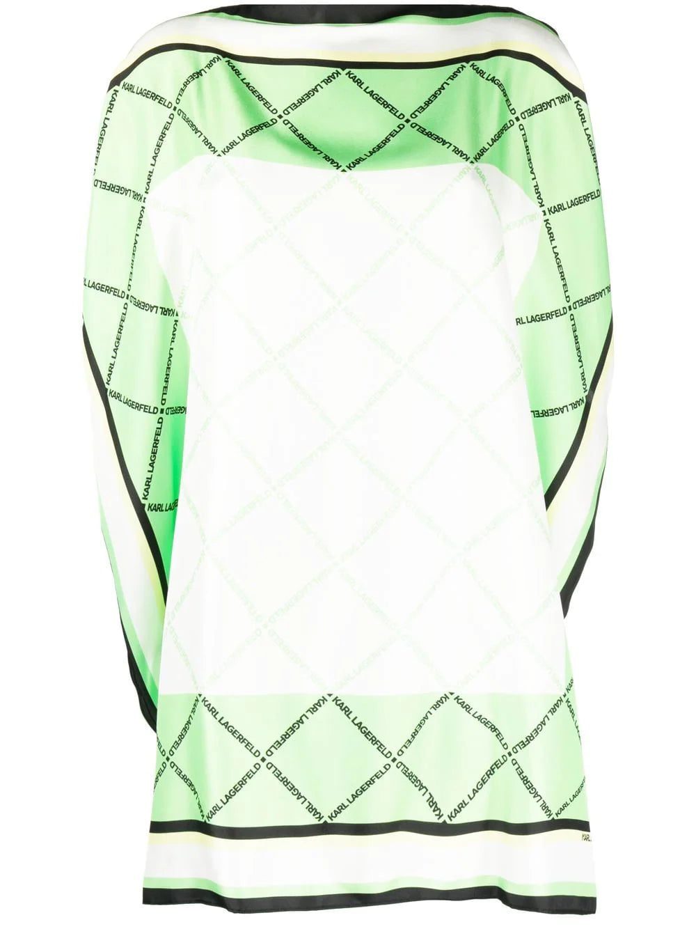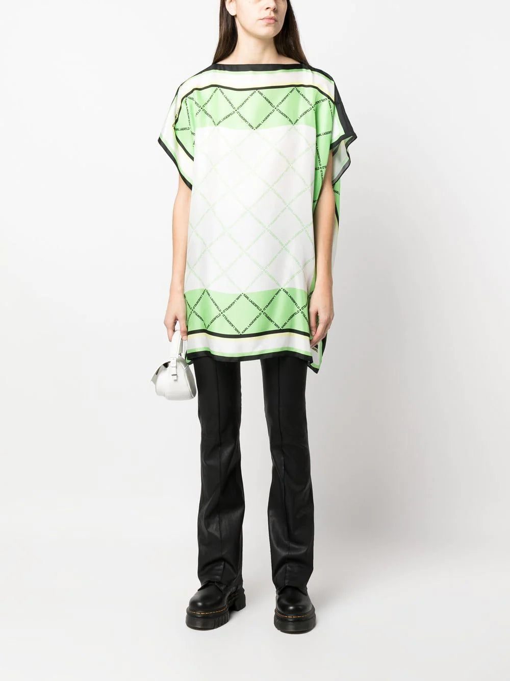 silk scarf longline top from KARL LAGERFELD featuring white/multicolour, silk, check pattern, square neck, short sleeves and straight hem.