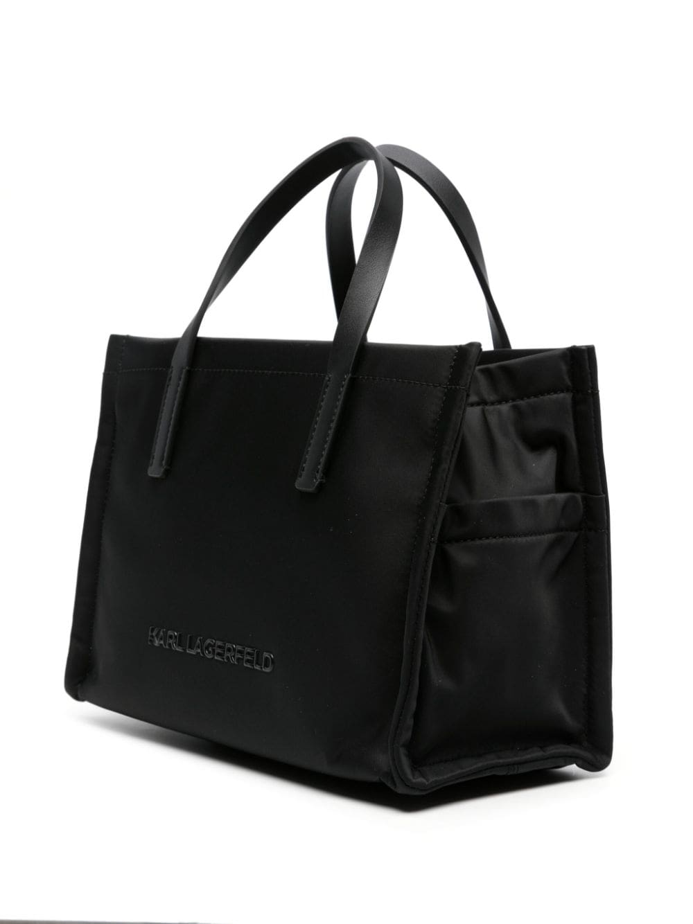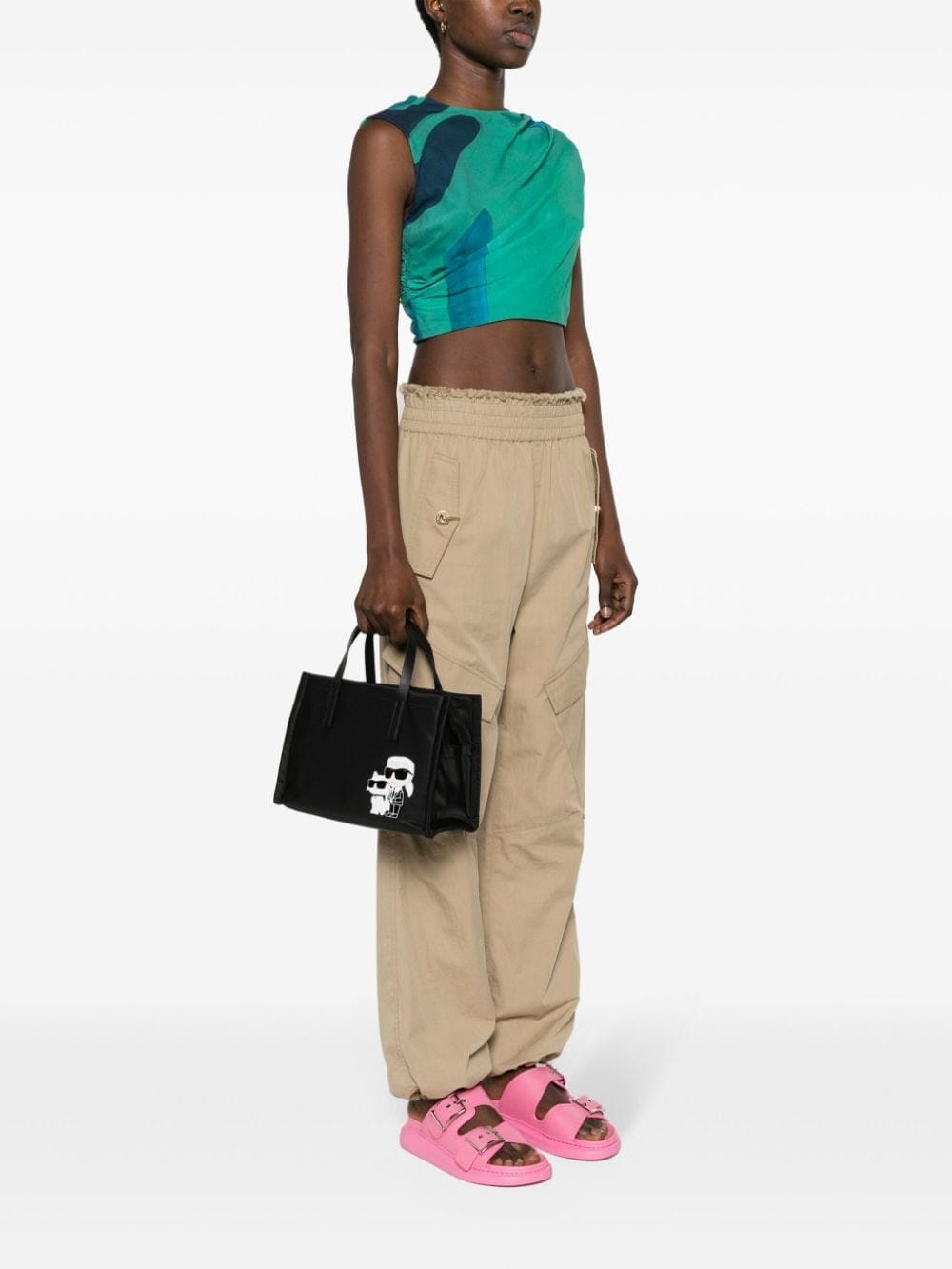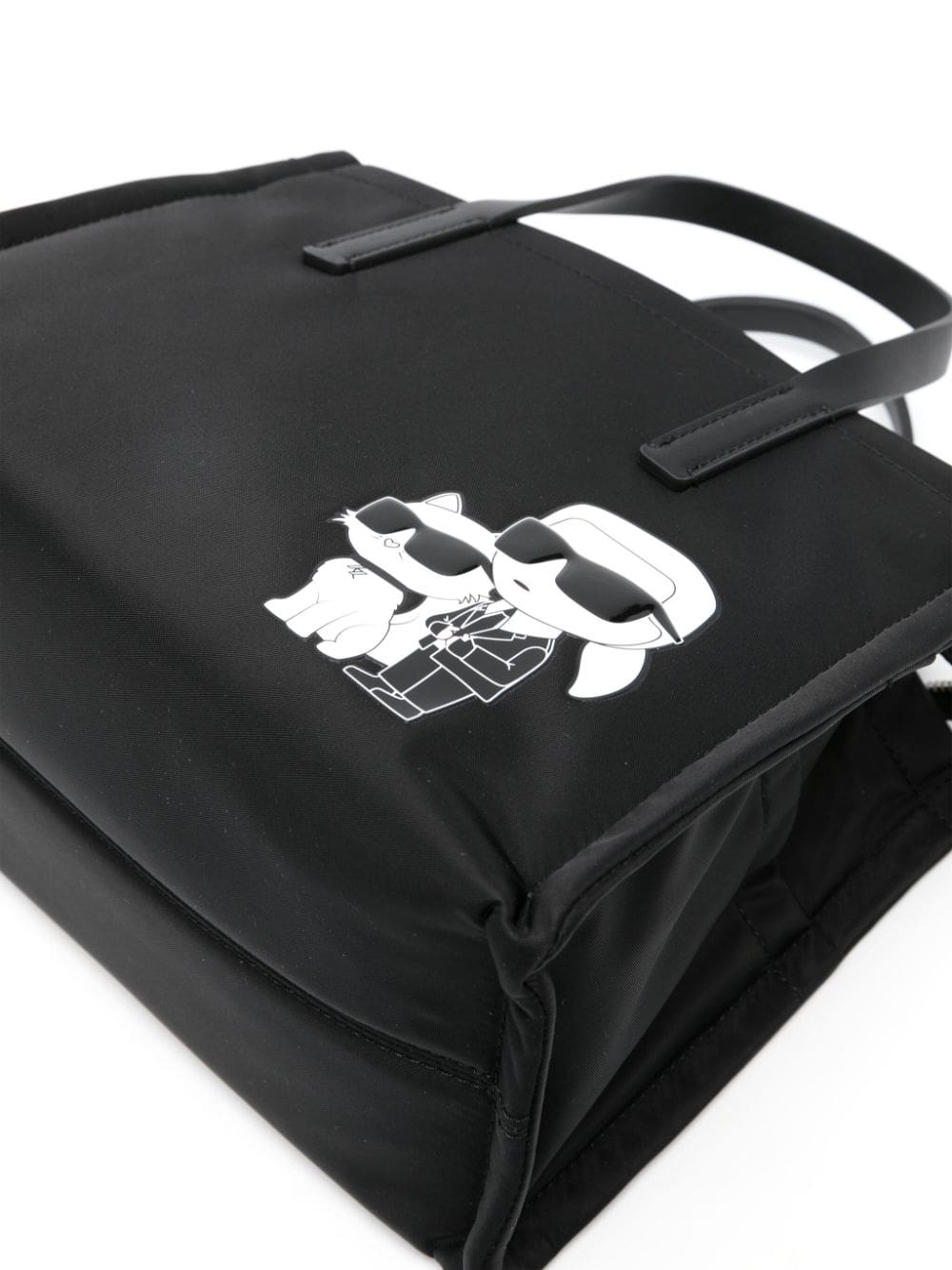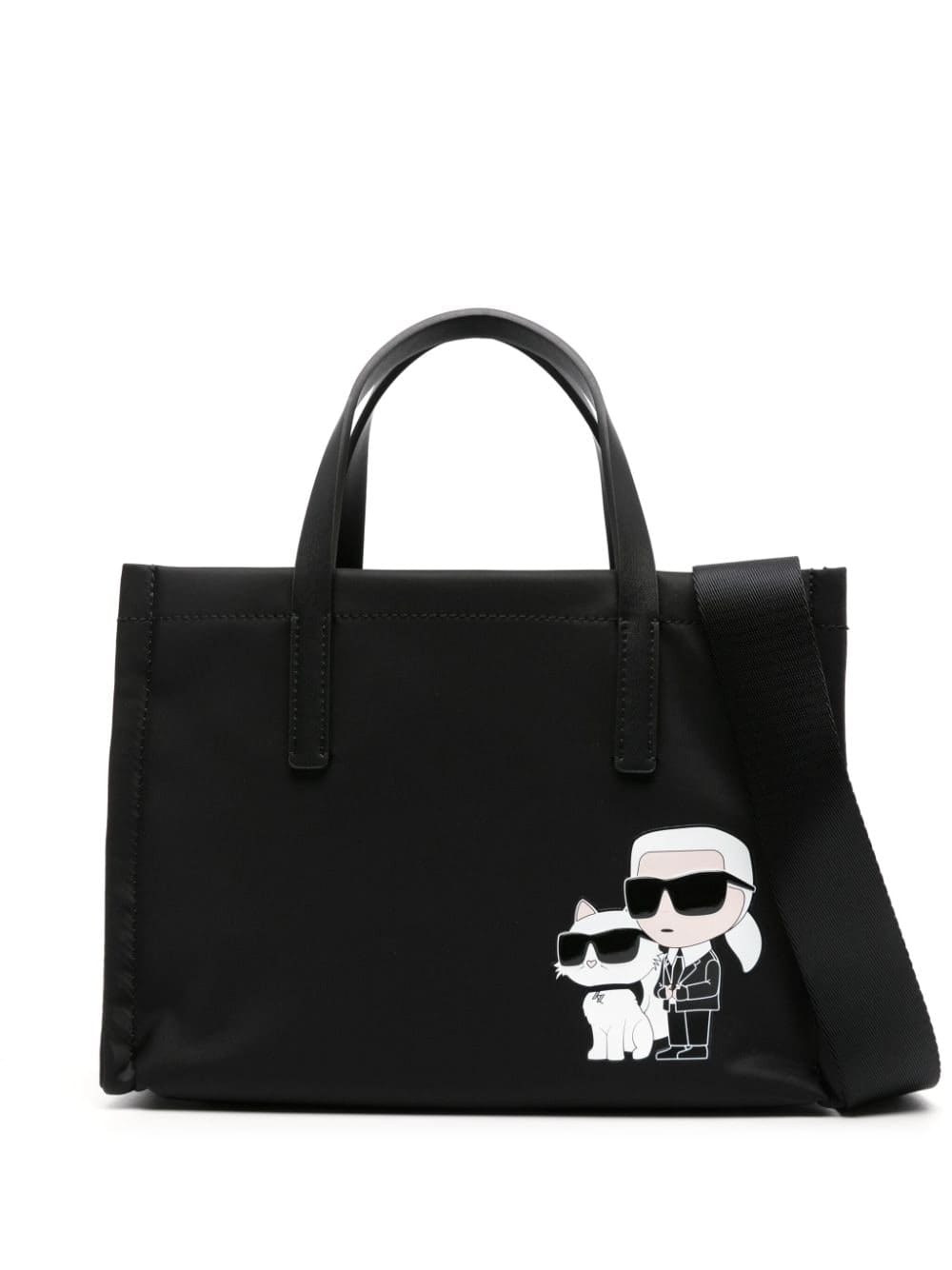 This small Ikonik 2.0 tote bag from Karl Lagerfeld is instantly recognisable thanks to the signature Ikonik Karl motif on the front, which illustrates the brand's founder and pet cat Choupette. It's constructed from black recycled fabric with two top handles and an adjustable detachable shoulder strap that allows for multiple styling options.