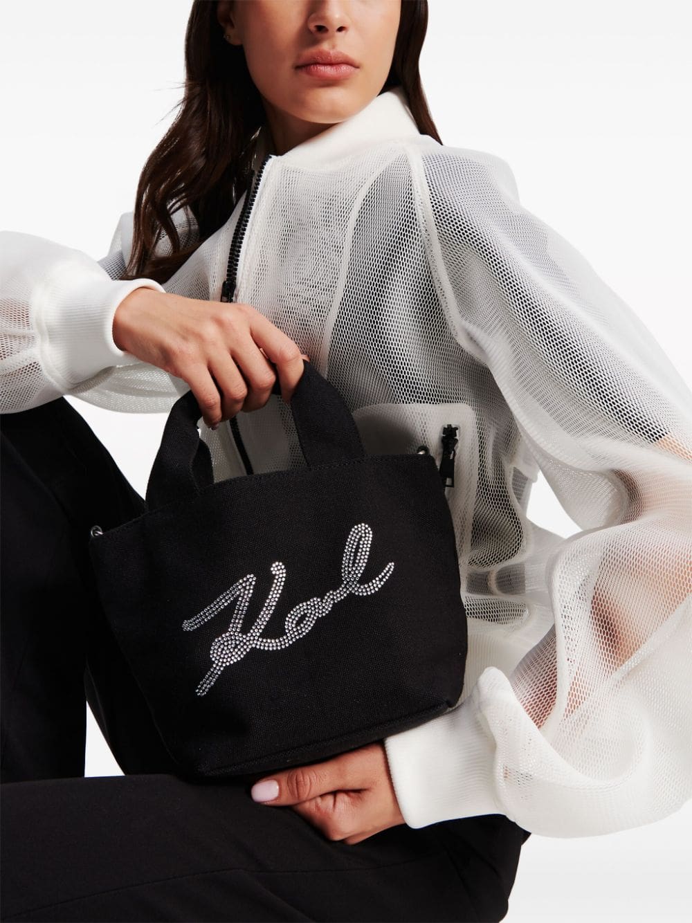 Karl Lagerfeld small Signature rhinestone-embellished tote bag