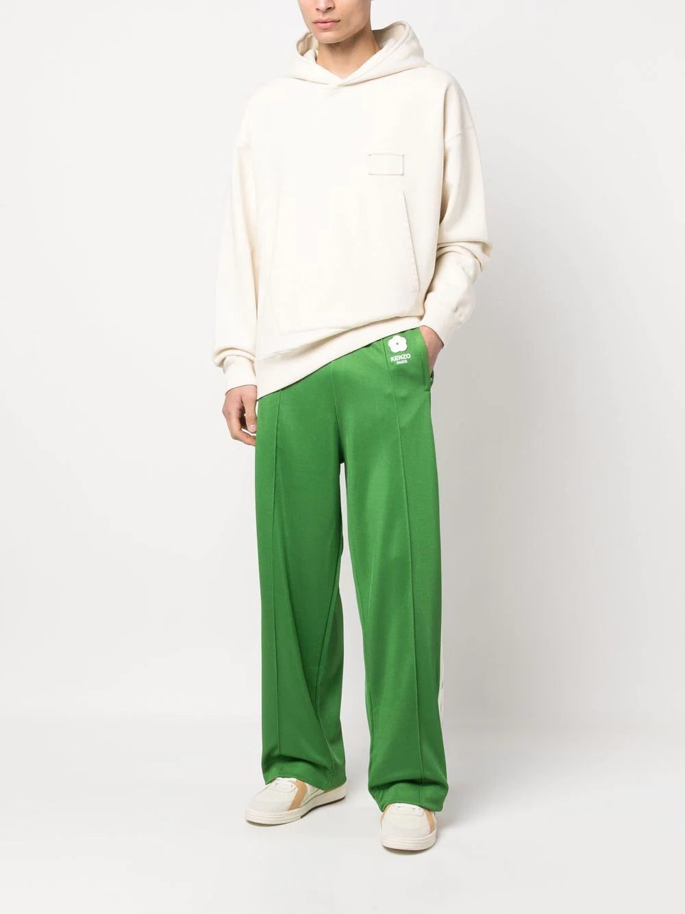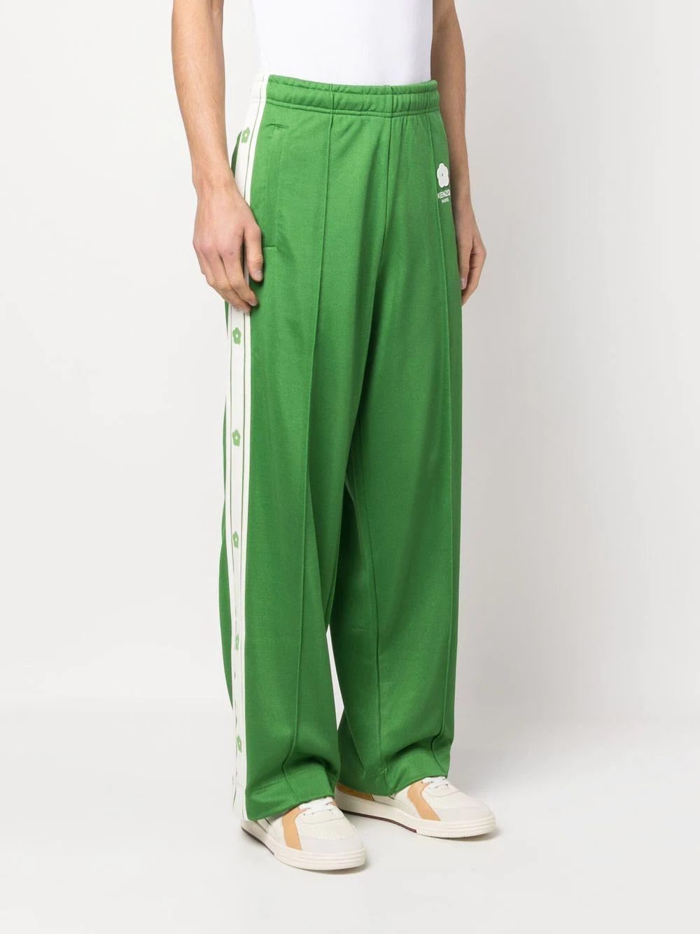 A strong emphasis on bold colours underpins Kenzo's SS23 collection. These emerald-green track pants are decorated with the signature Boke Flower, which is inspired by the eponymous Japanese bloom that typically blossoms in February.