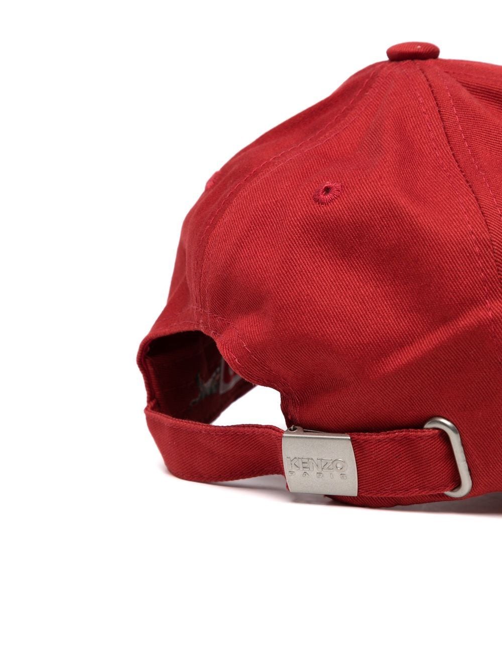 bright red cotton embroidered logo to the front curved peak adjustable strap to the rear pull-on style
