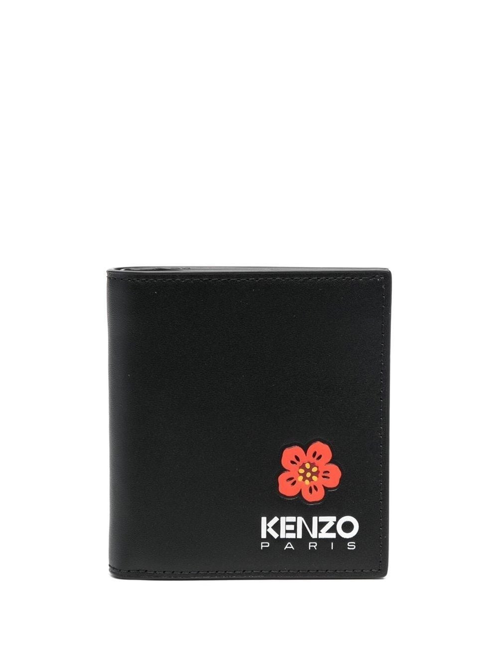black calf leather logo print to the side floral print bi-fold design internal card slots