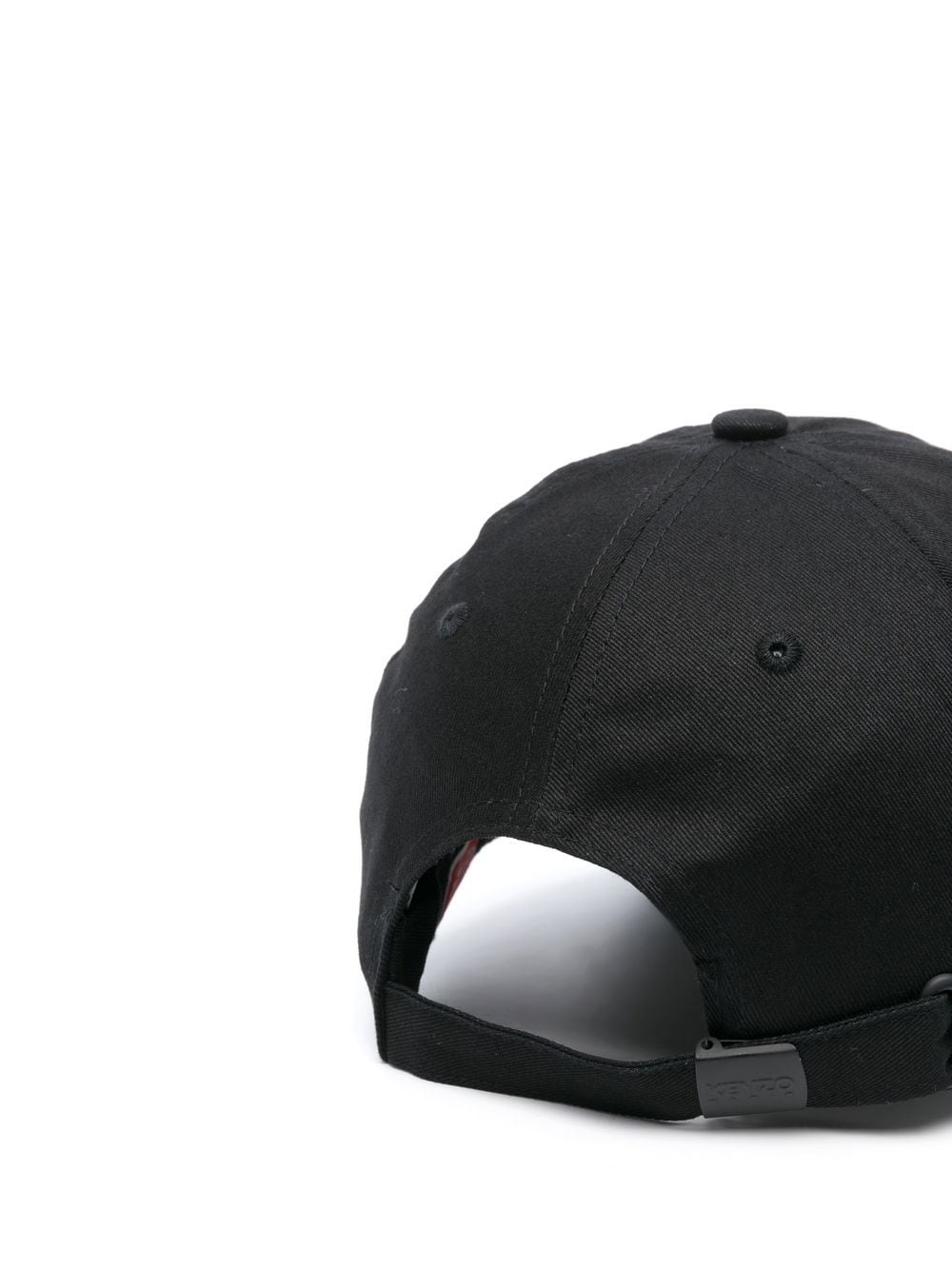 black cotton embroidered logo to the front curved peak eyelet detailing adjustable strap to the rear