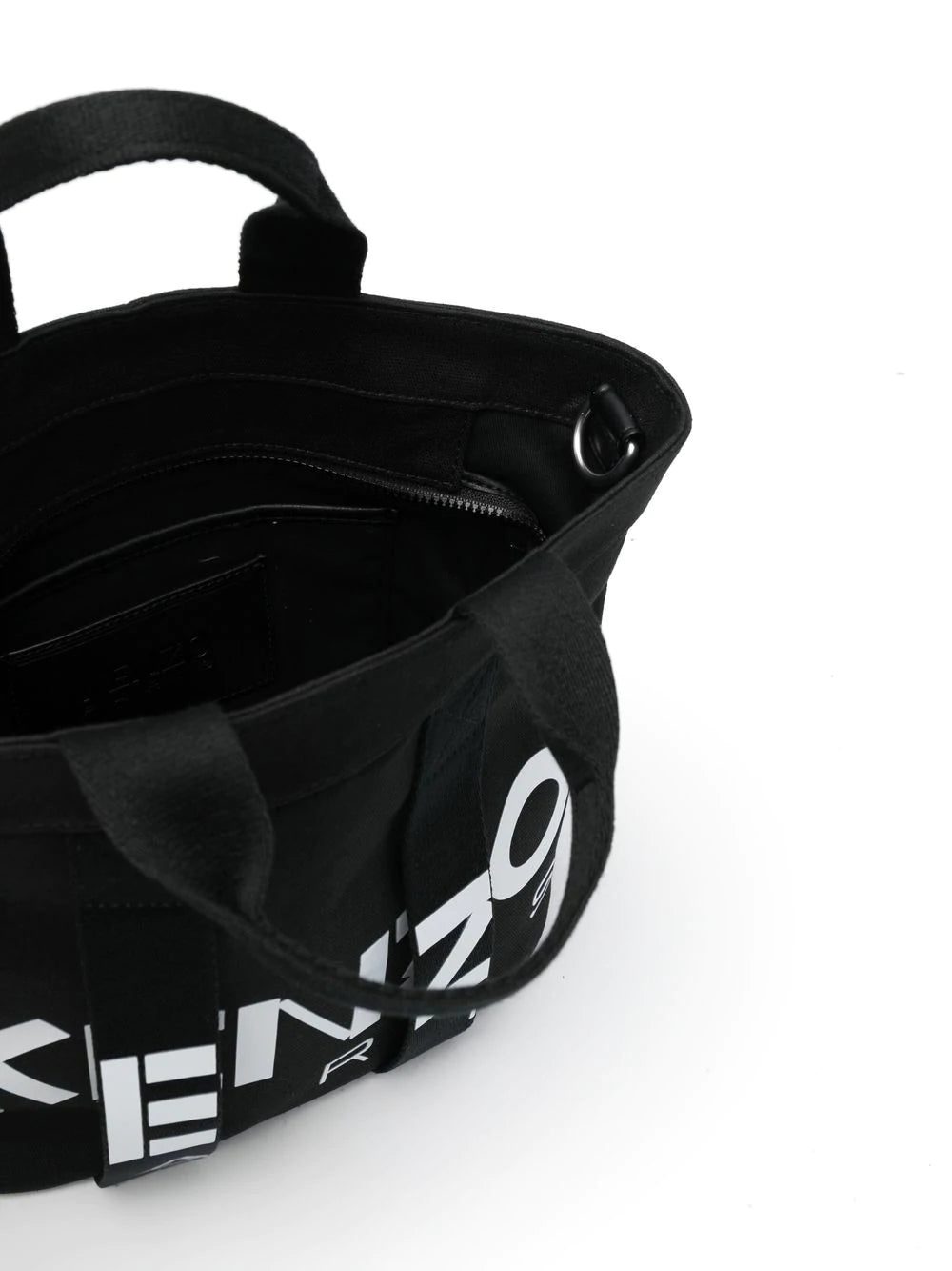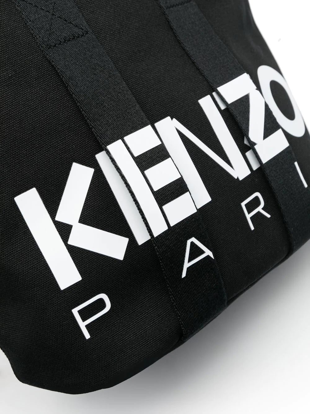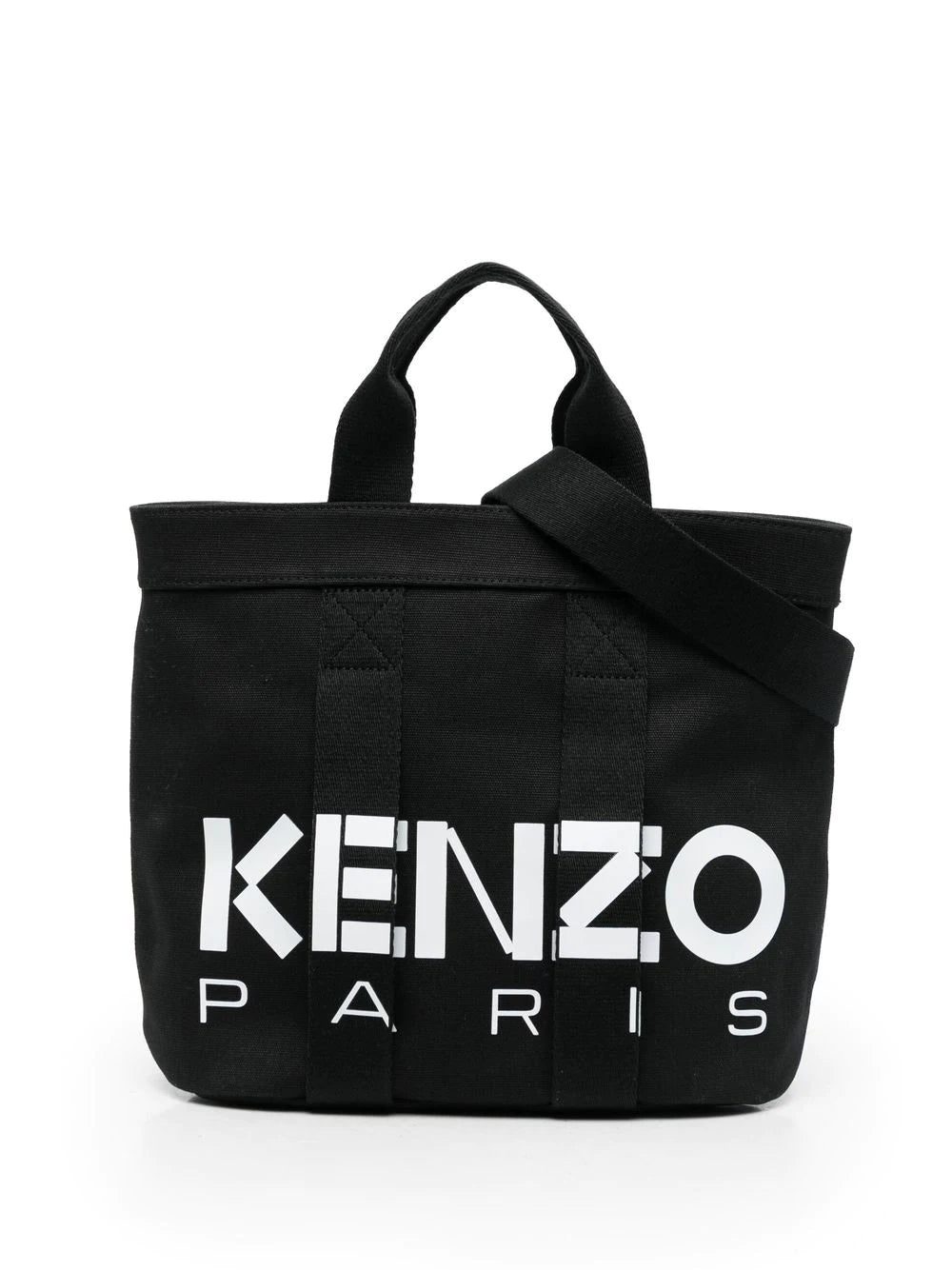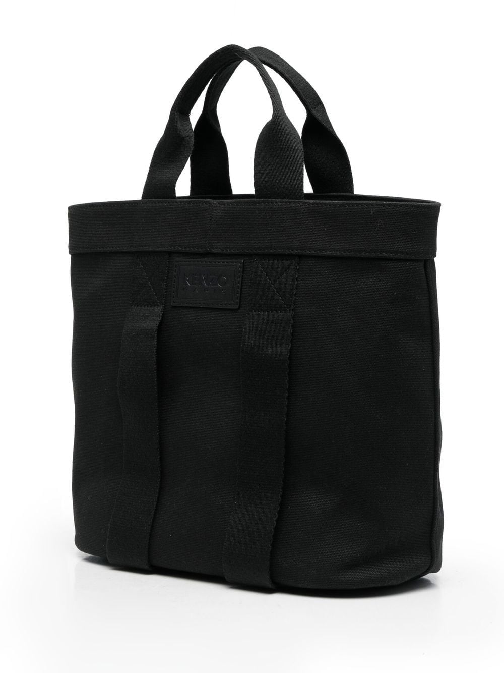 logo-print tote bag from KENZO featuring black, cotton, logo print to the front, open top and two rounded top handles.