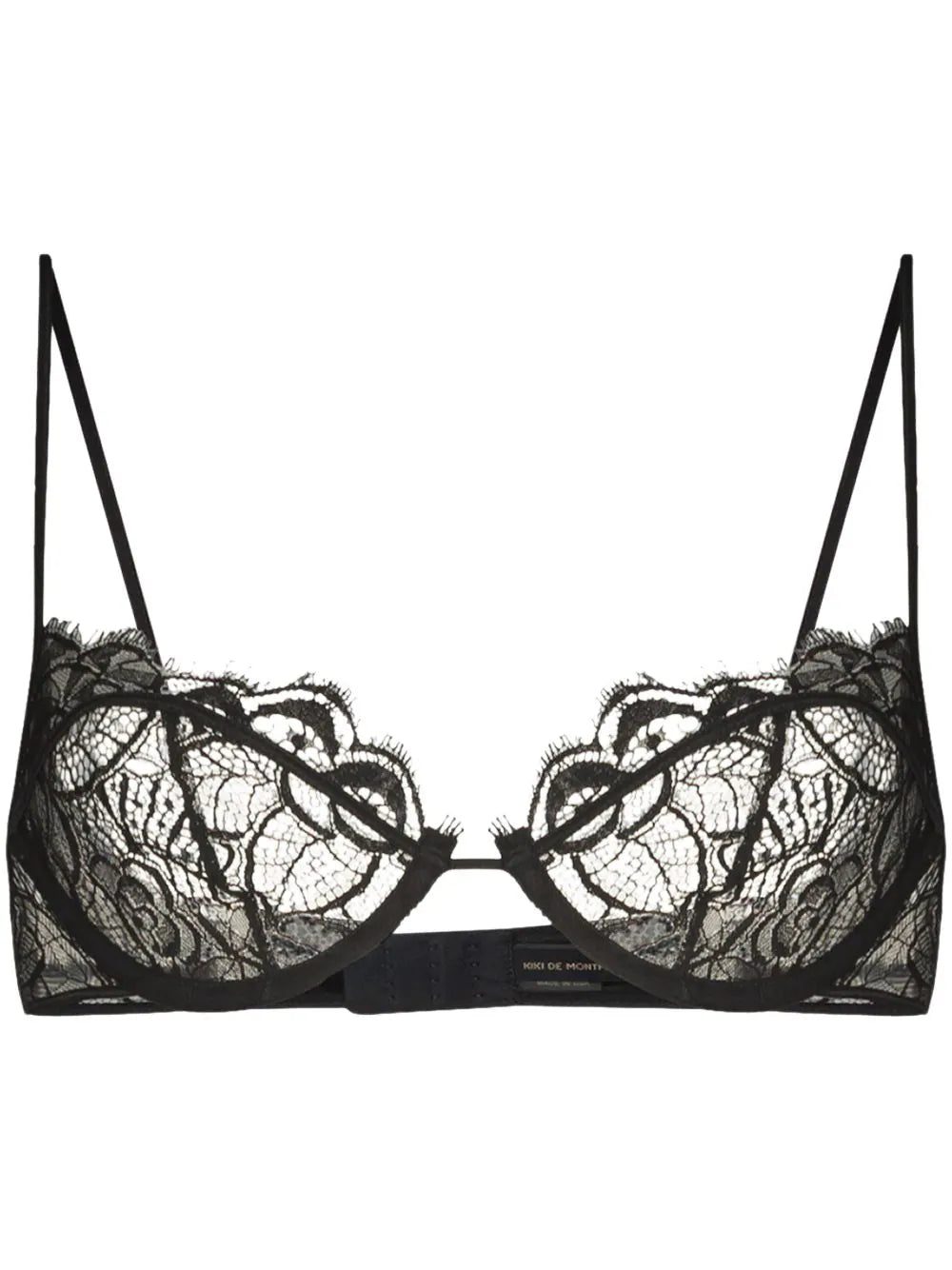 Kiki de Montparnasse Coquette demi-bra blends the support of its underwire design with delicate scalloped lace cups for a romantic look. With thin adjustable straps, its plunging cut suits reveal necklines.