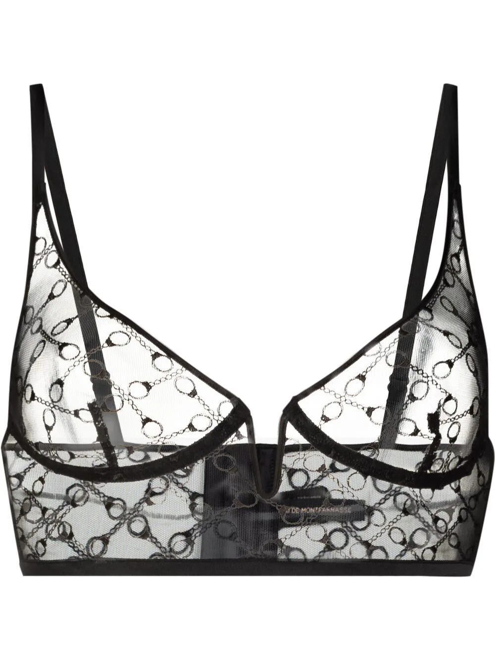 Delicately crafted using high-quality materials, Kiki de Montparnasse presents this bra. Crafted in a black hue with a sheer construction, this balconette silhouette stands out thanks to its handcuff embroidered design.