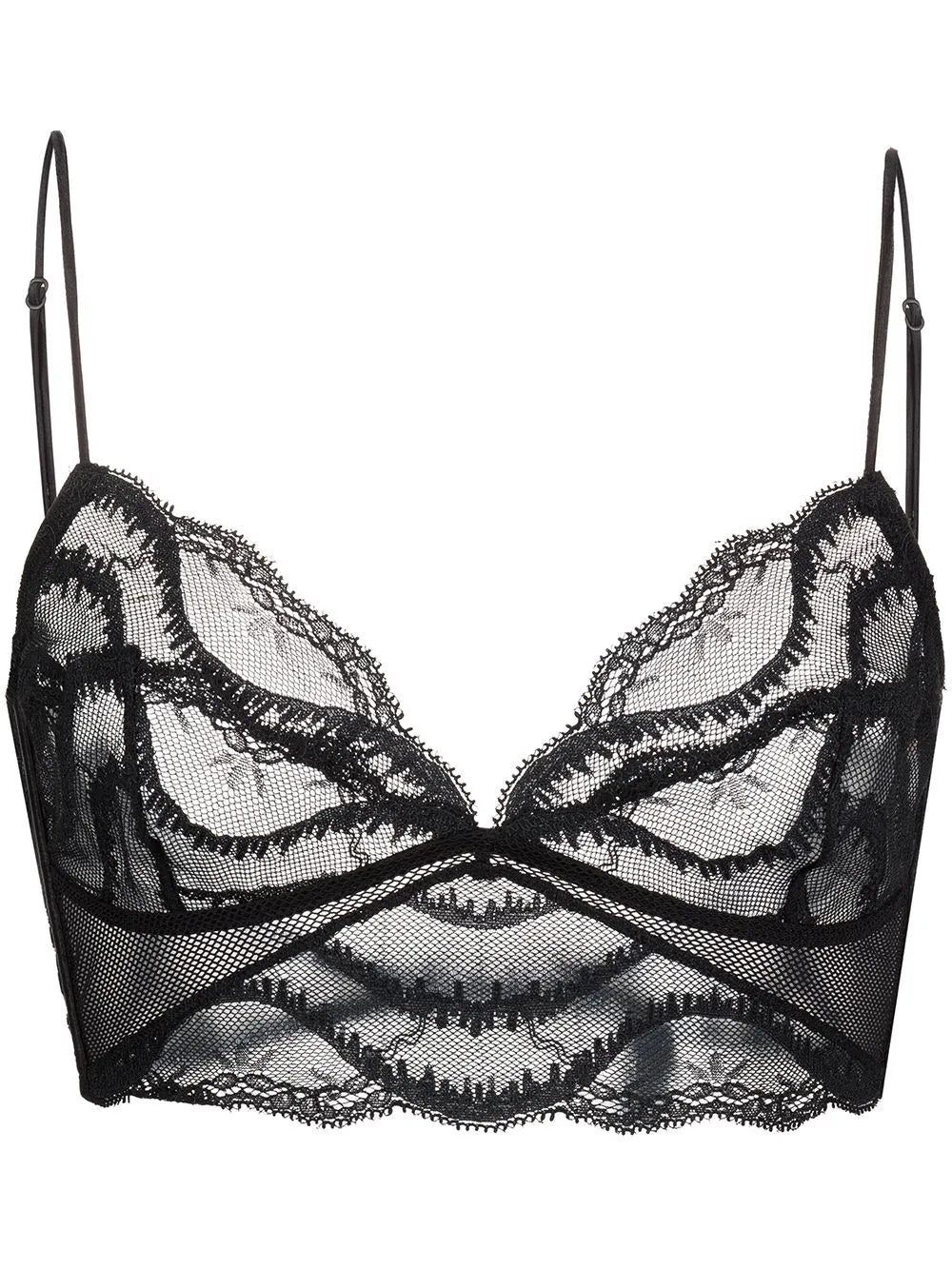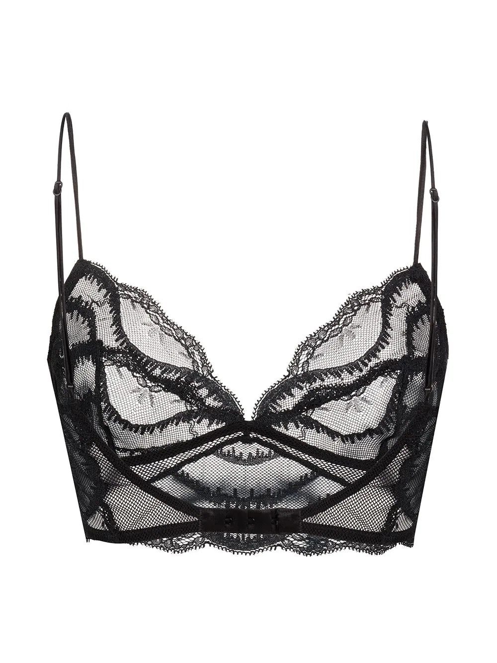 black floral-lace detailing spaghetti straps underwire cup rear clasp fastening It is essential that you try on underwear and lingerie over your own garments. We trust you to follow the rules.