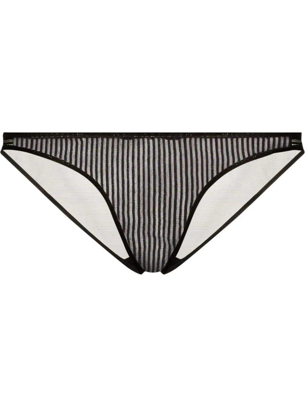 Classic and irreverent in equal measure, these briefs showcase a timeless lace construction with stripe detailing. For a signature alluring finish, the piece features a semi-sheer construction.