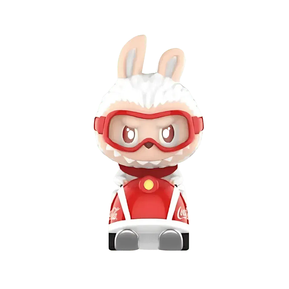Labubu The Monsters Coca-Cola Series – Crazy Ride Figure is a dynamic and playful collectible from the limited-edition collaboration between Pop Mart and Coca-Cola. This figure features Labubu, the mischievous character from "The Monsters" series, dressed in a fluffy white bunny suit with red goggles and a red scarf, riding a red and white snow scooter. The design captures the essence of winter sports and the festive spirit associated with Coca-Cola.