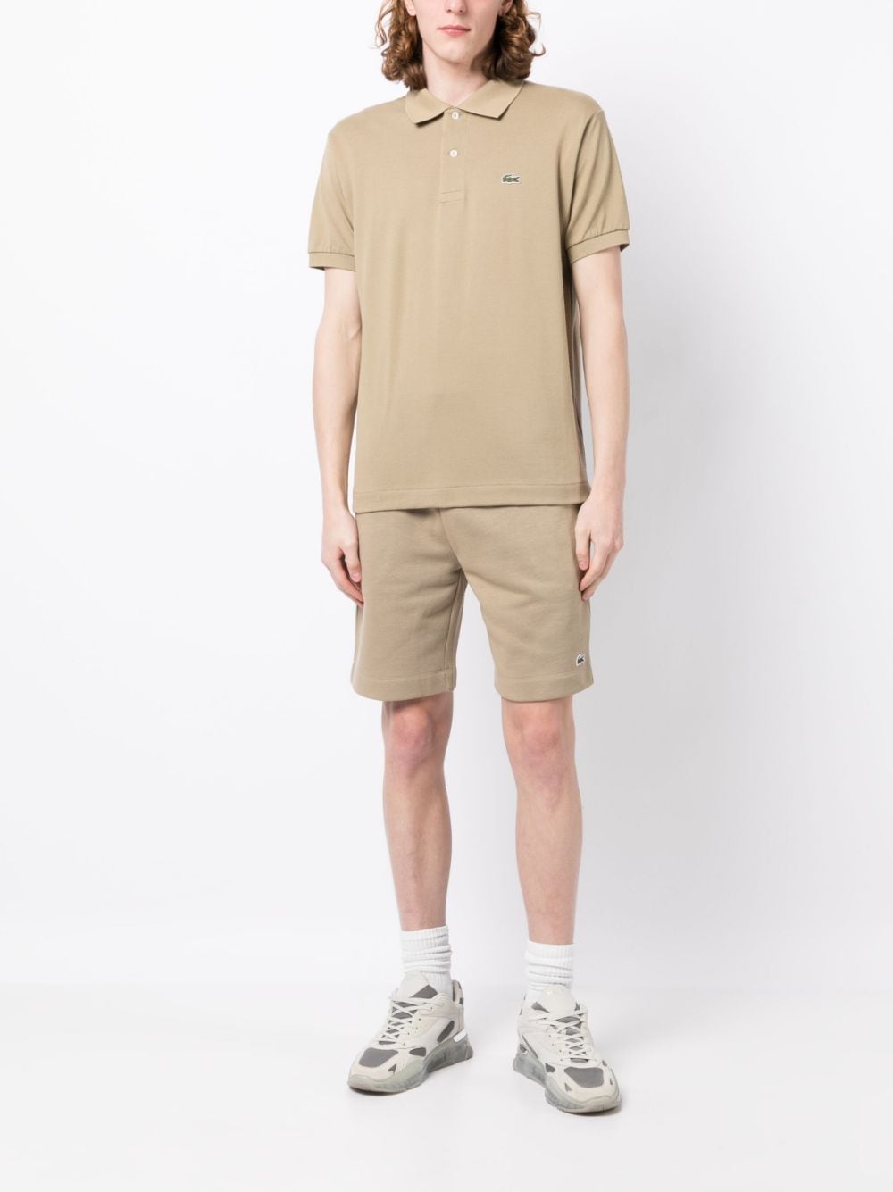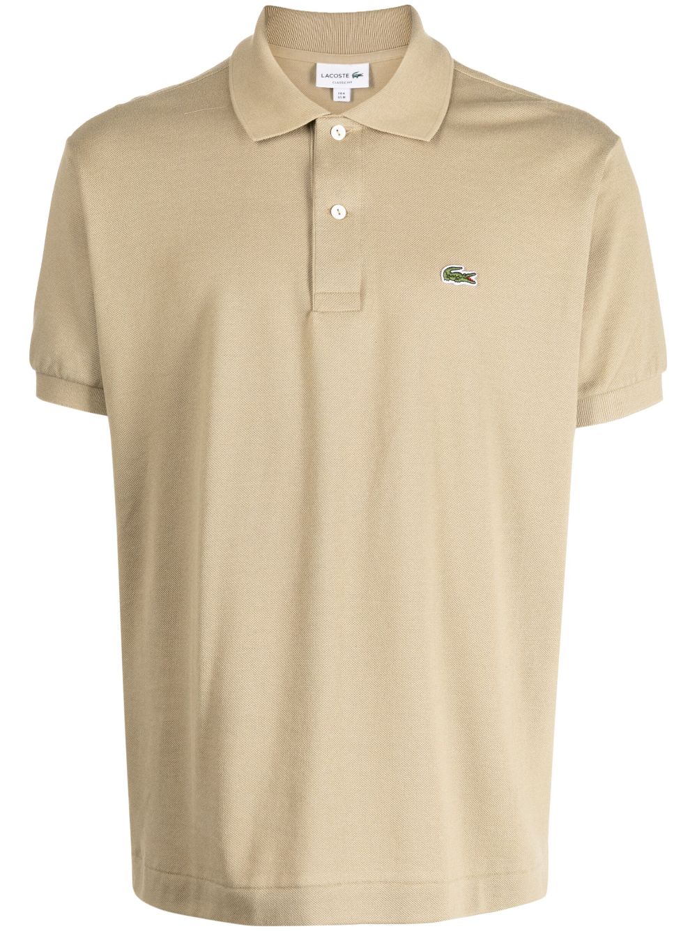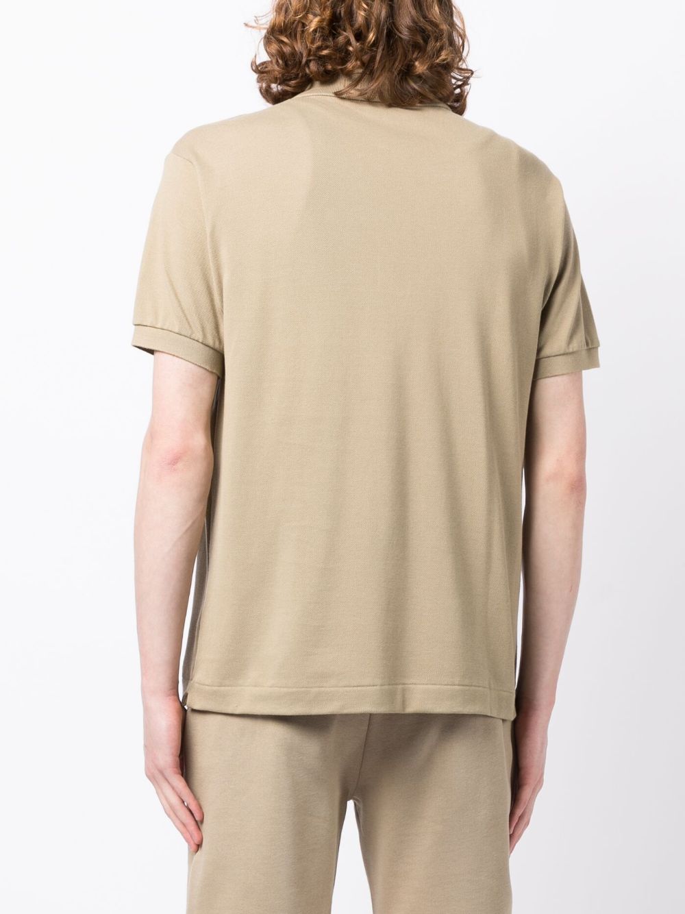 beige cotton piqué weave embroidered logo at the chest polo collar short front button fastening short sleeves straight hem
