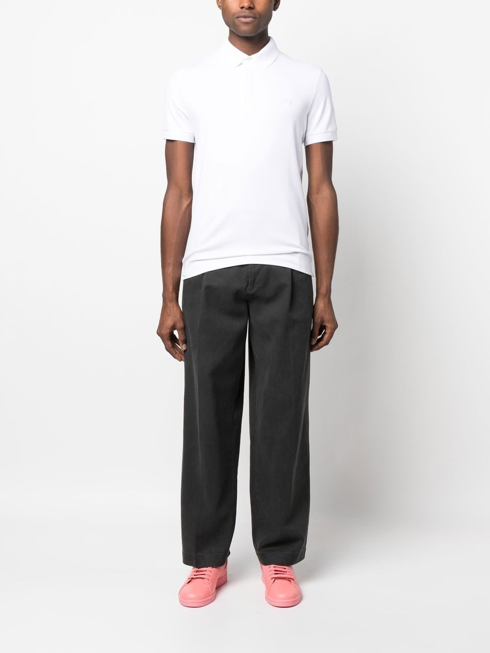white stretch-cotton logo patch at the chest polo collar short sleeves straight hem