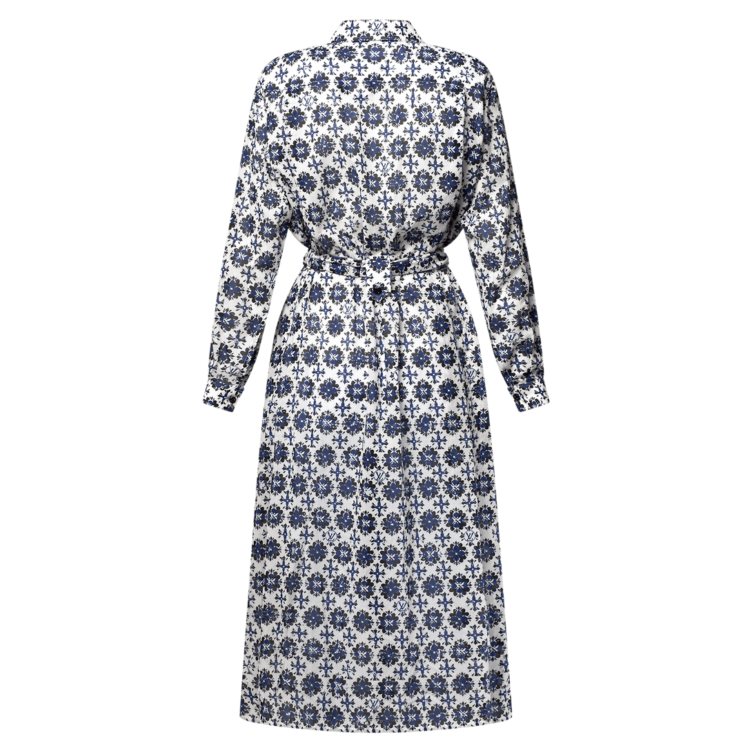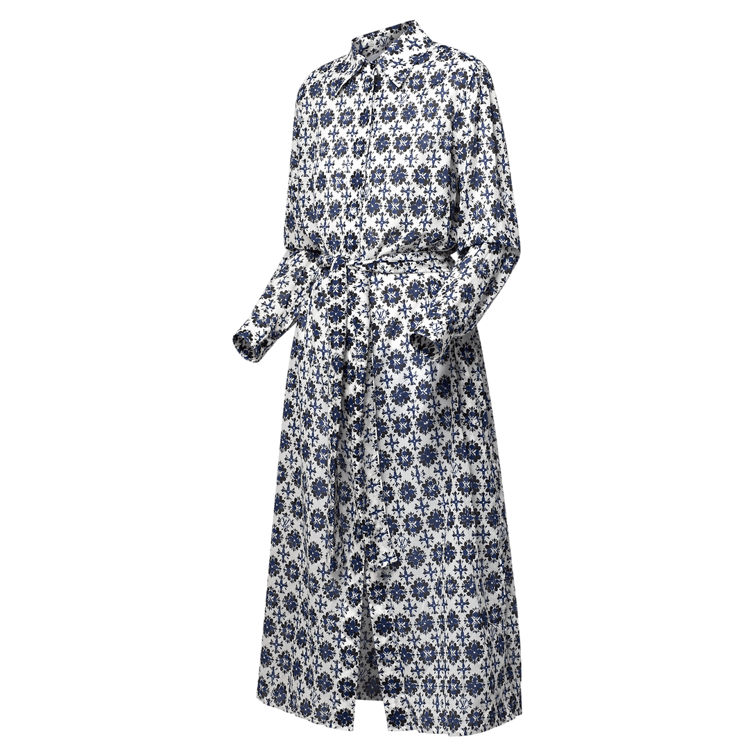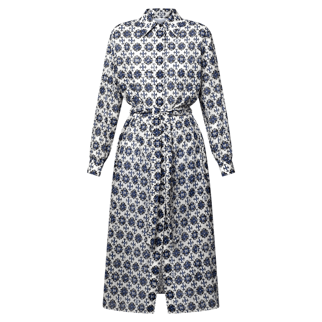 This elegant shirt dress is elevated with a graphic seasonal signature, which reimagines the House’s iconic Monogram in a geometric tile motif inspired by detailing at the historic home of Louis Vuitton. Tailored from lightweight fil coupé cotton poplin, it is cinched at the waist with a knotted belt and fastened with a hidden button tab.