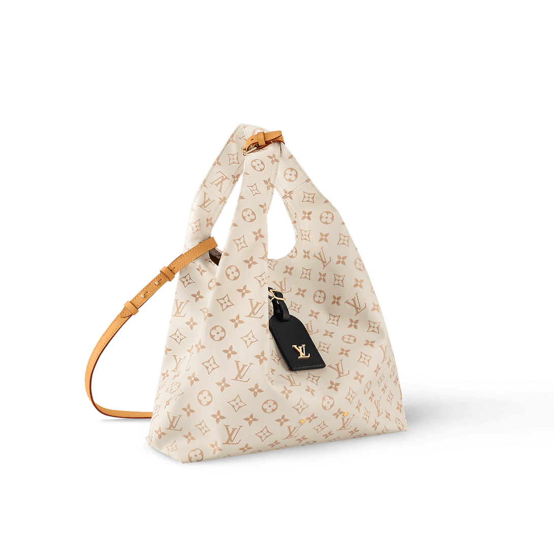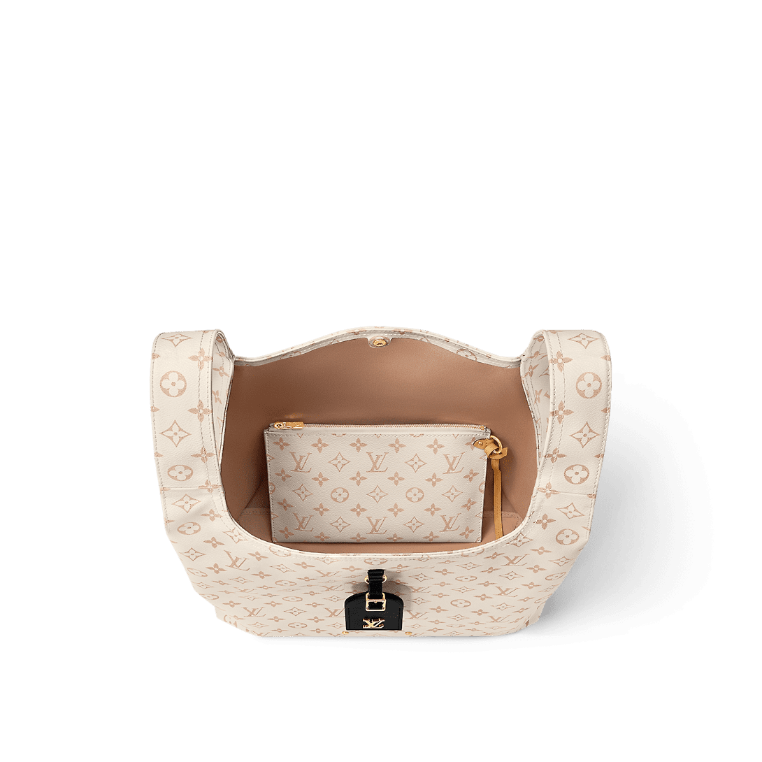 With its unusual silhouette and black-leather name tag, the Atlantis GM is an everyday bag that’s as stylish as it is practical. Fashioned from Nicolas Ghesquière’s new Monogram Dune canvas, with a beige colorway inspired by the colors of sand. The Atlantis features two handles, with a removable handle-fastener, and a detachable leather strap for shoulder carry.