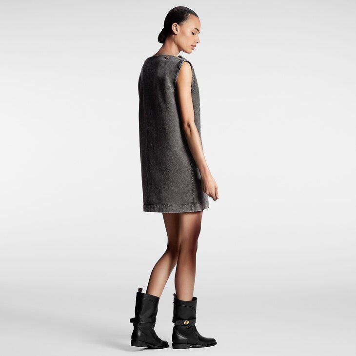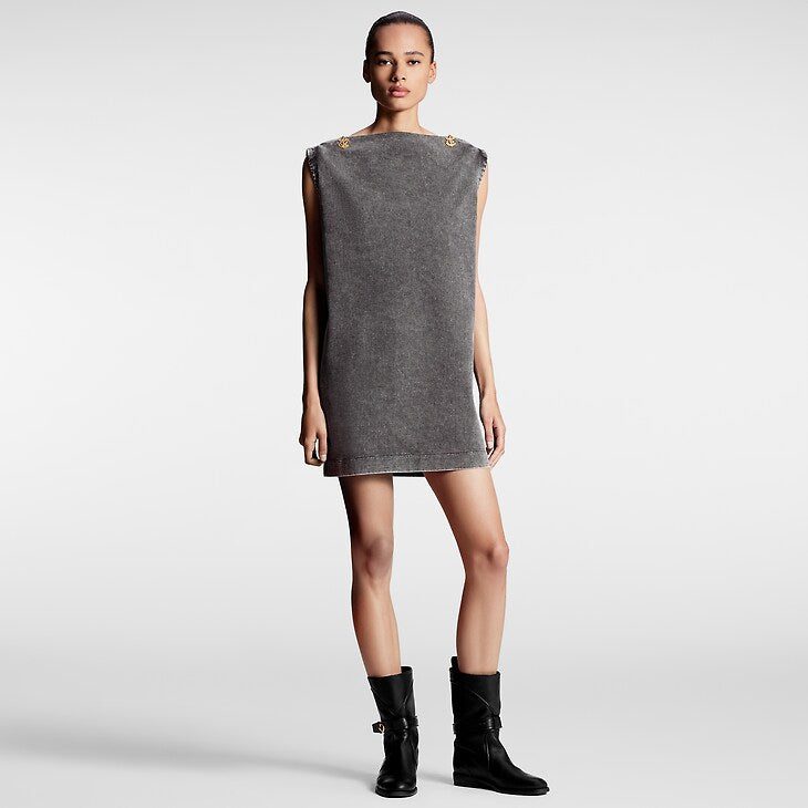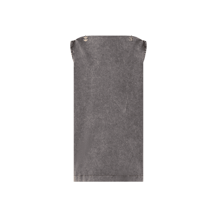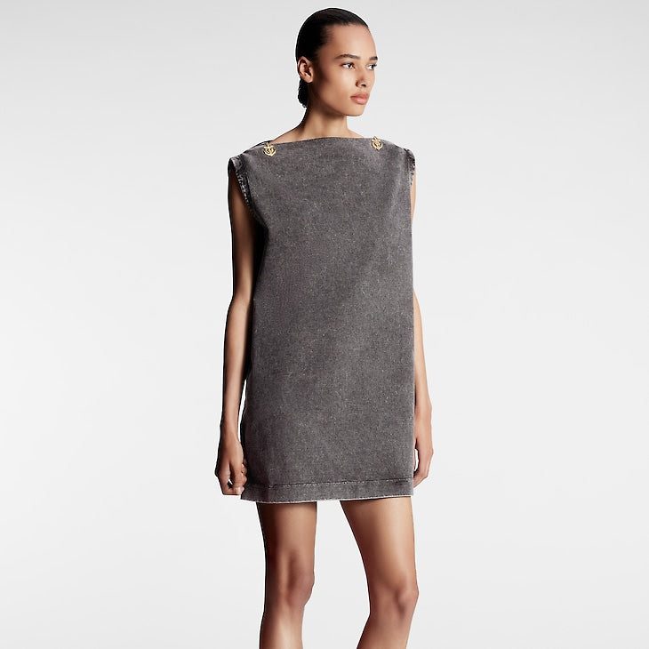 This sleeveless T-shirt dress has a breezy, vintage vibe in overdyed cotton jersey cut in a loose straight-cut silhouette for comfortable everyday styling. A bateau neckline trimmed with this season’s essential anchor buttons completes the look with an elegant nautical touch.