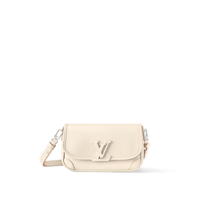 - Front flap with decorative LV resin ornament, magnetic closure
