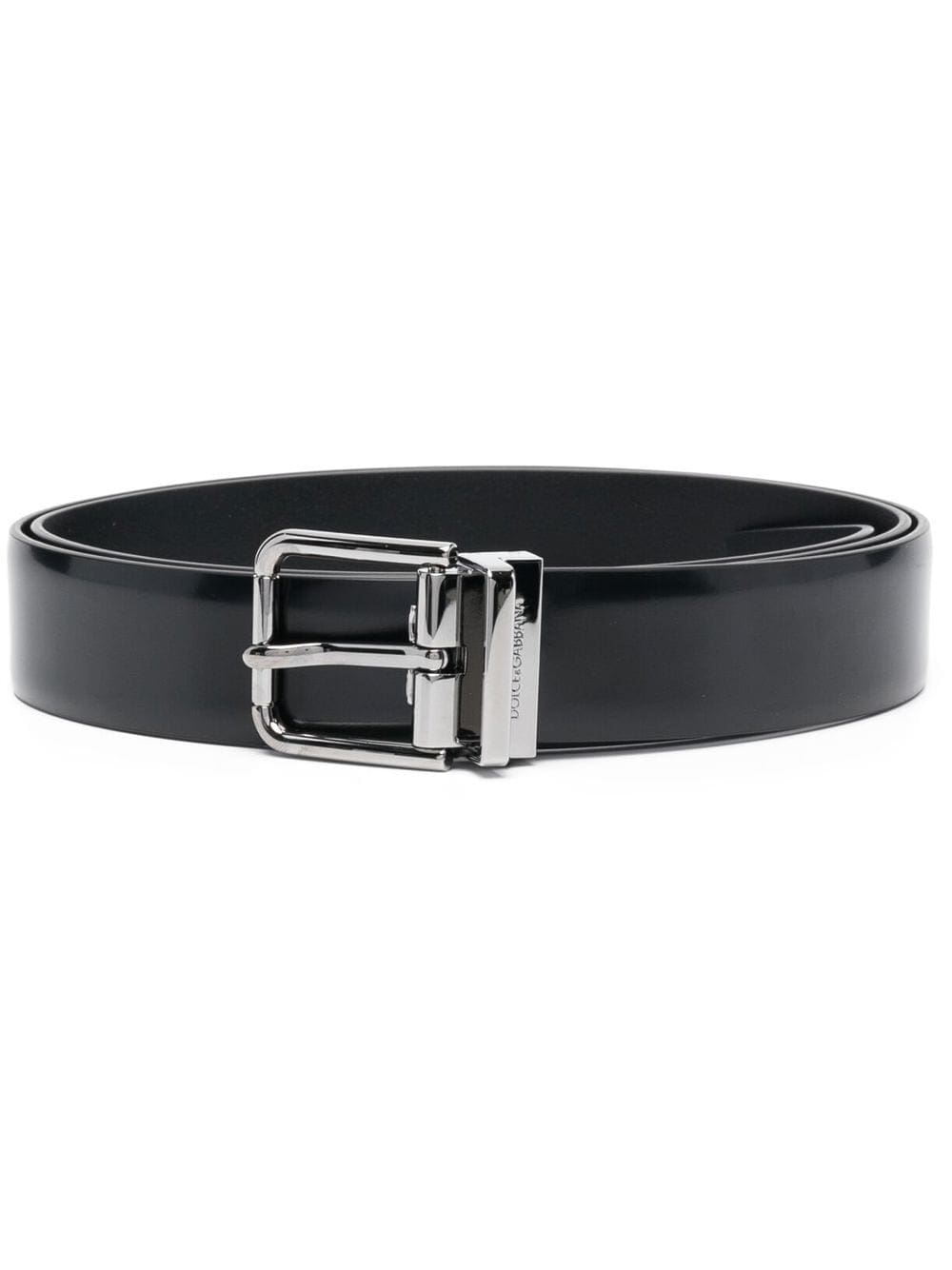 onyx black calf leather buckle fastening silver-tone hardware punched holes