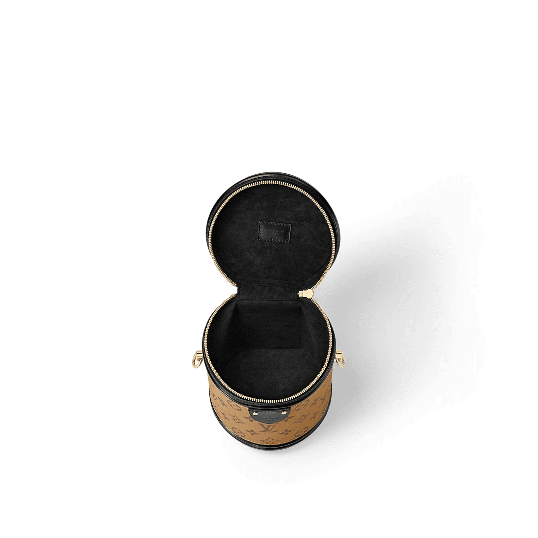 Featuring the historical shape of the LV Cannes beauty case, designer Nicolas Ghesquière revives a long-standing classic with the Cannes handbag. Petite in size and presented in a mix of Monogram and Monogram reverse coated canvas, the elegant piece reanimates a traditional silhouette steeped in Louis Vuitton heritage. A removable leather strap and top handle provide a range of carrying options.