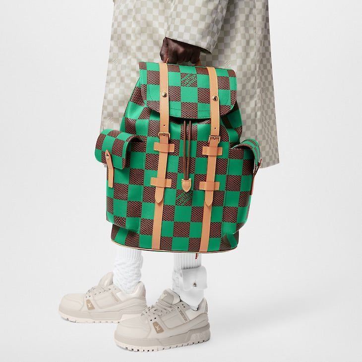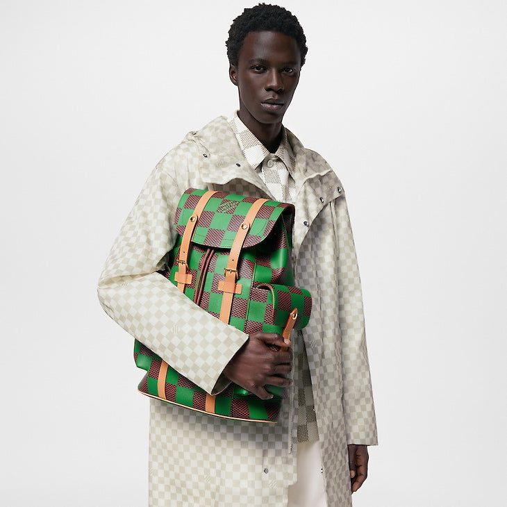 The Christopher MM backpack takes on a fashion-forward aspect in Creative Director Pharrell Williams’ playful Damier Pop canvas. Inspired by the House’s iconic Damier pattern, Williams creates a bold bright version with primary color. Inspired by the classic hiker’s rucksack, the Christopher features two roomy side pockets and closes with a drawstring and press studs.