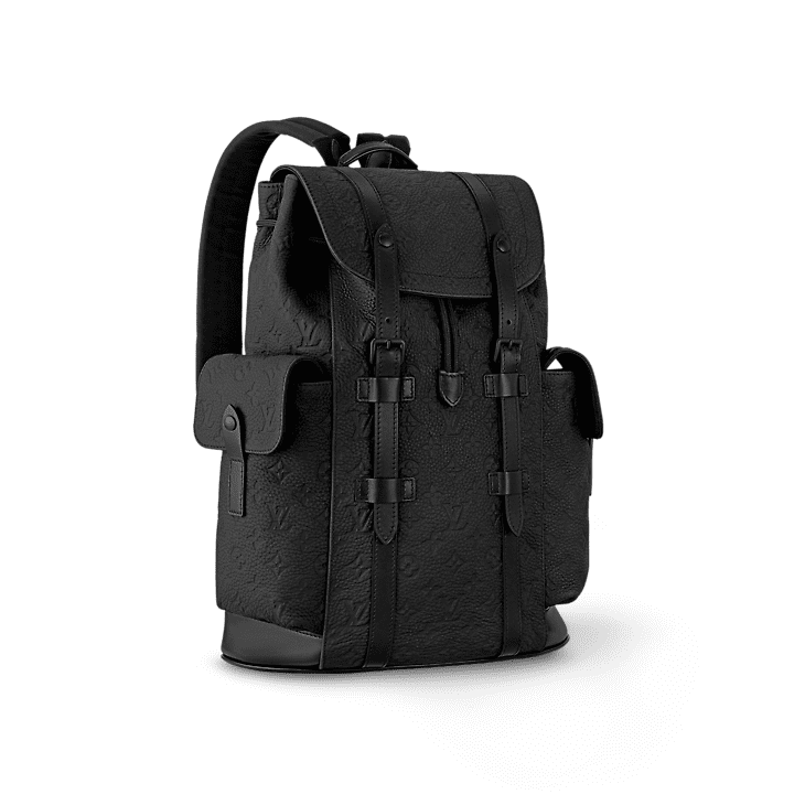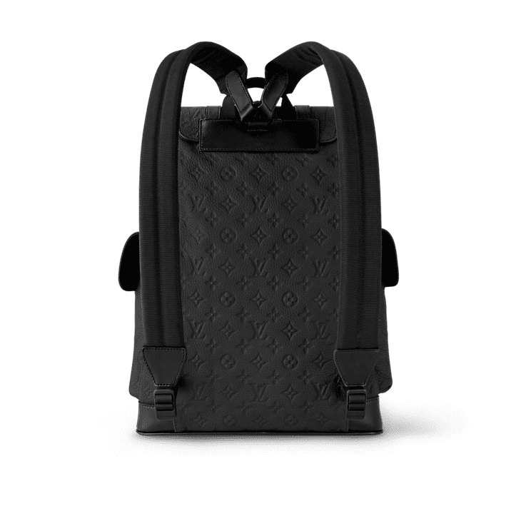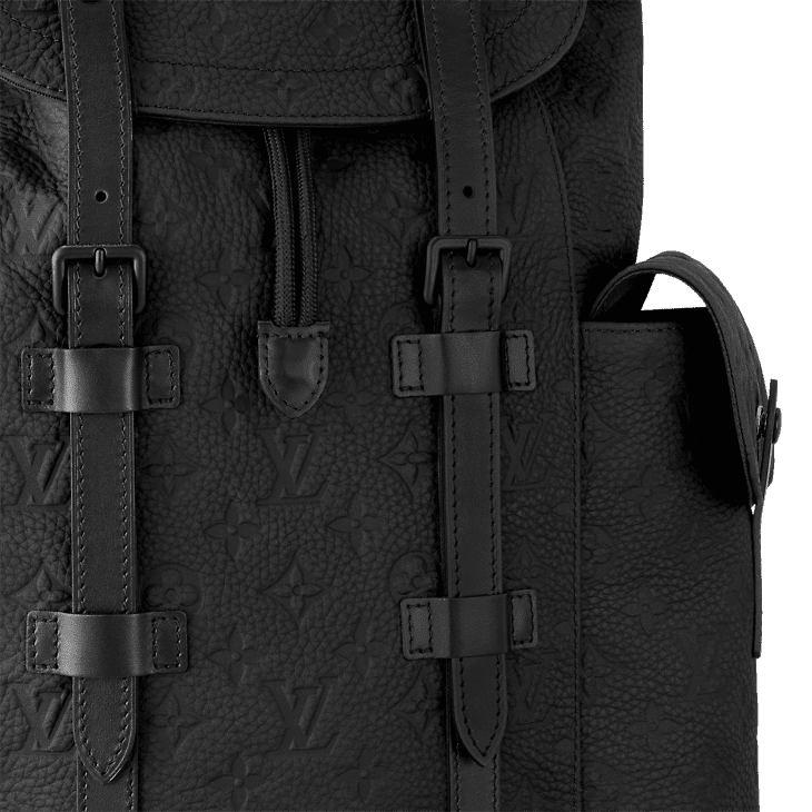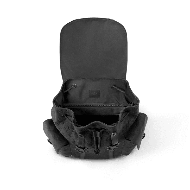 The Christopher MM backpack is a mid-sized backpack with two exterior side pockets and numerous functional pockets inside. Fashioned from Taurillon leather with an embossed Monogram motif, it is finished with black leather straps and matte-black hardware. A drawstring and press-stud closure keeps what’s inside secure.