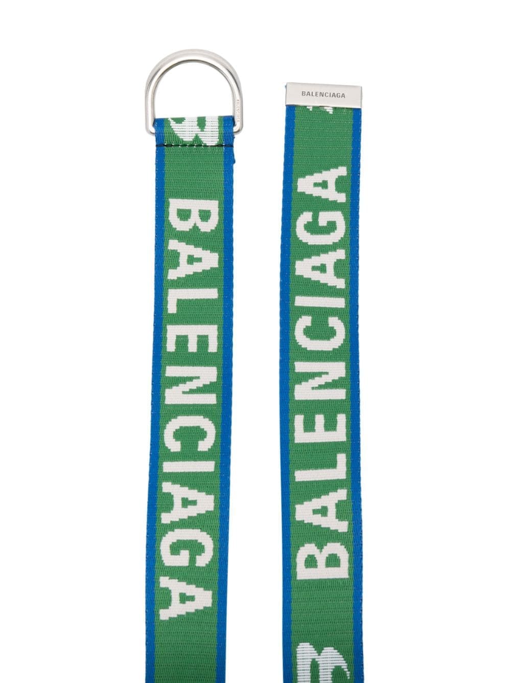 Embellished with a logo jacquard motif across its length, this belt from Balenciaga is made in Italy from durable cotton. Finished with silver-tone hardware, it fastens with a D-ring buckle reminiscent of the brand's utilitarian take on accessories.