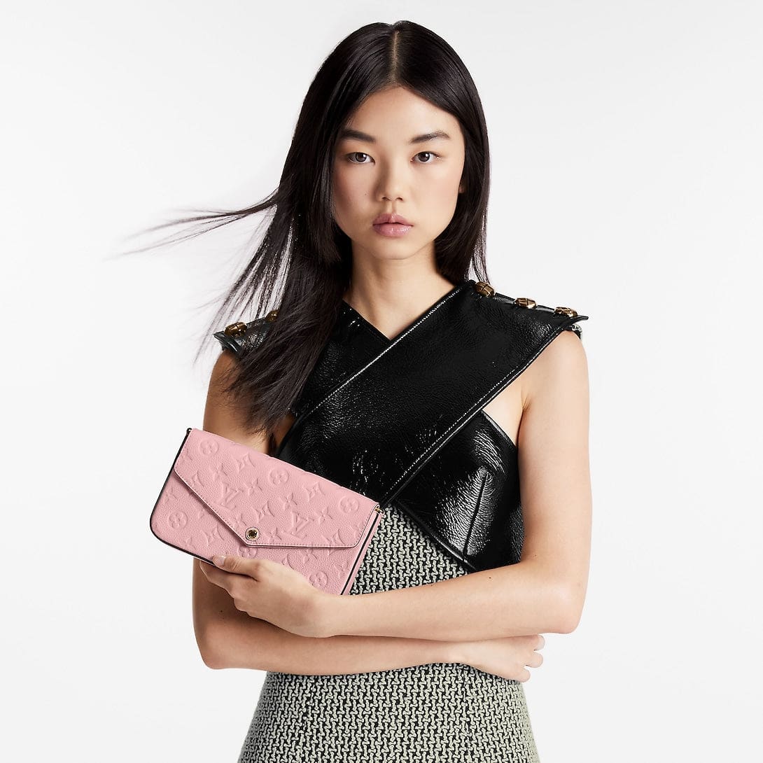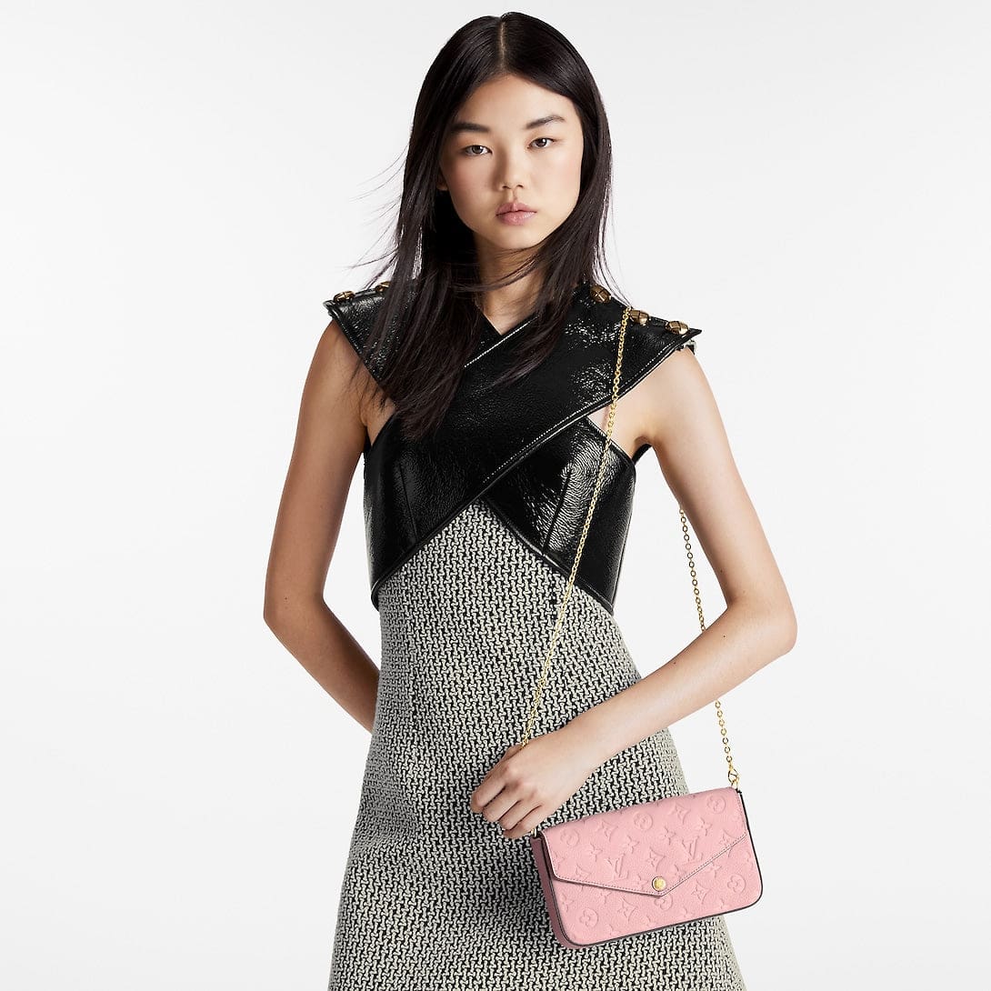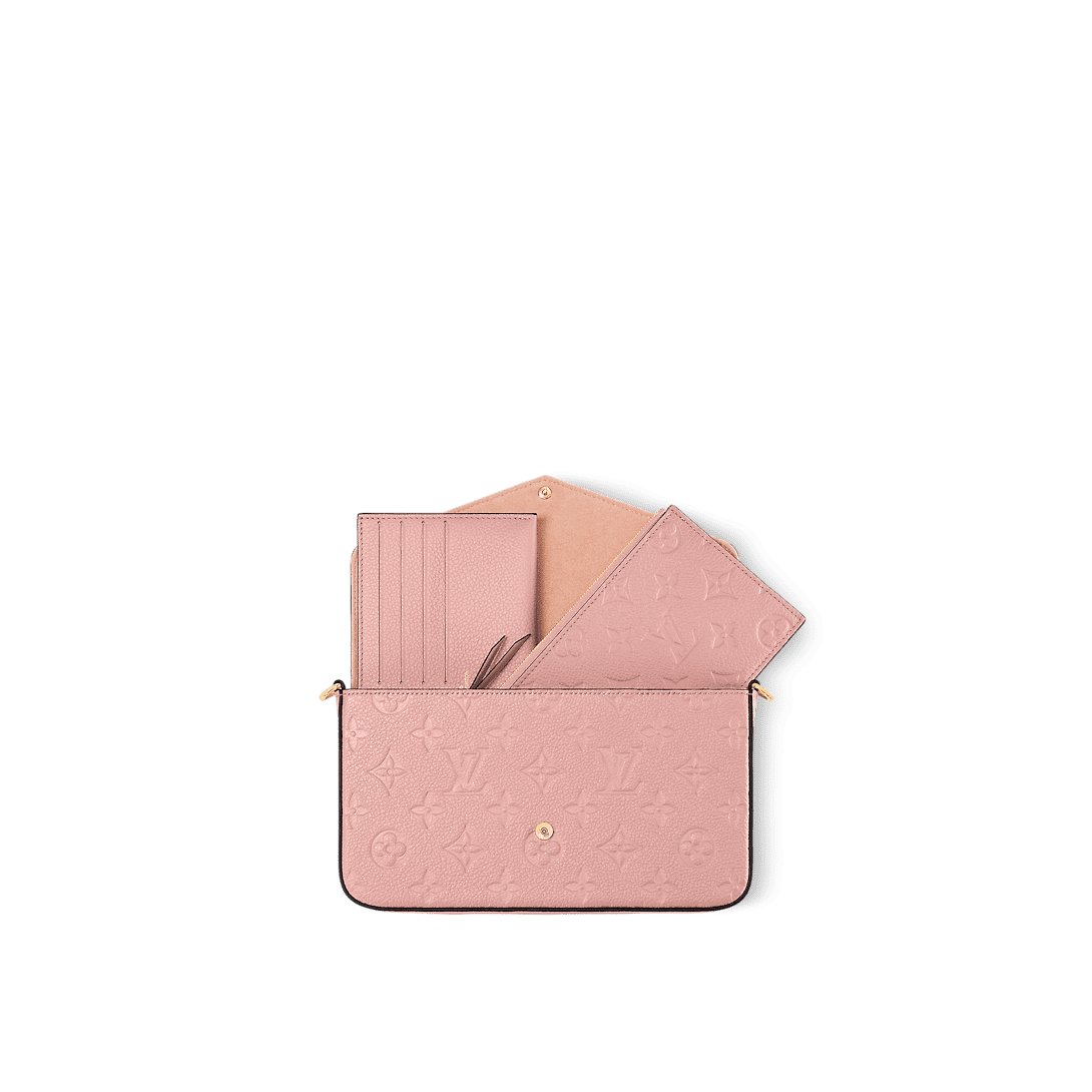 The Félicie Pochette is crafted from Monogram Empreinte leather, embossed with Louis Vuitton's signature Monogram pattern. Designed to adapt to modern lifestyles, this envelope-style pouch contains a spacious compartment with two removable pockets: one zipped, one with card slots. It can also be carried in different ways thanks to a removable chain.