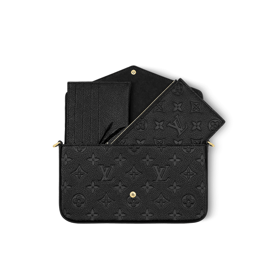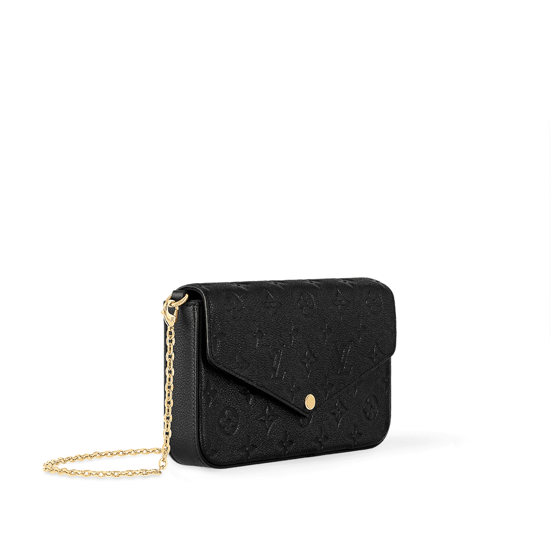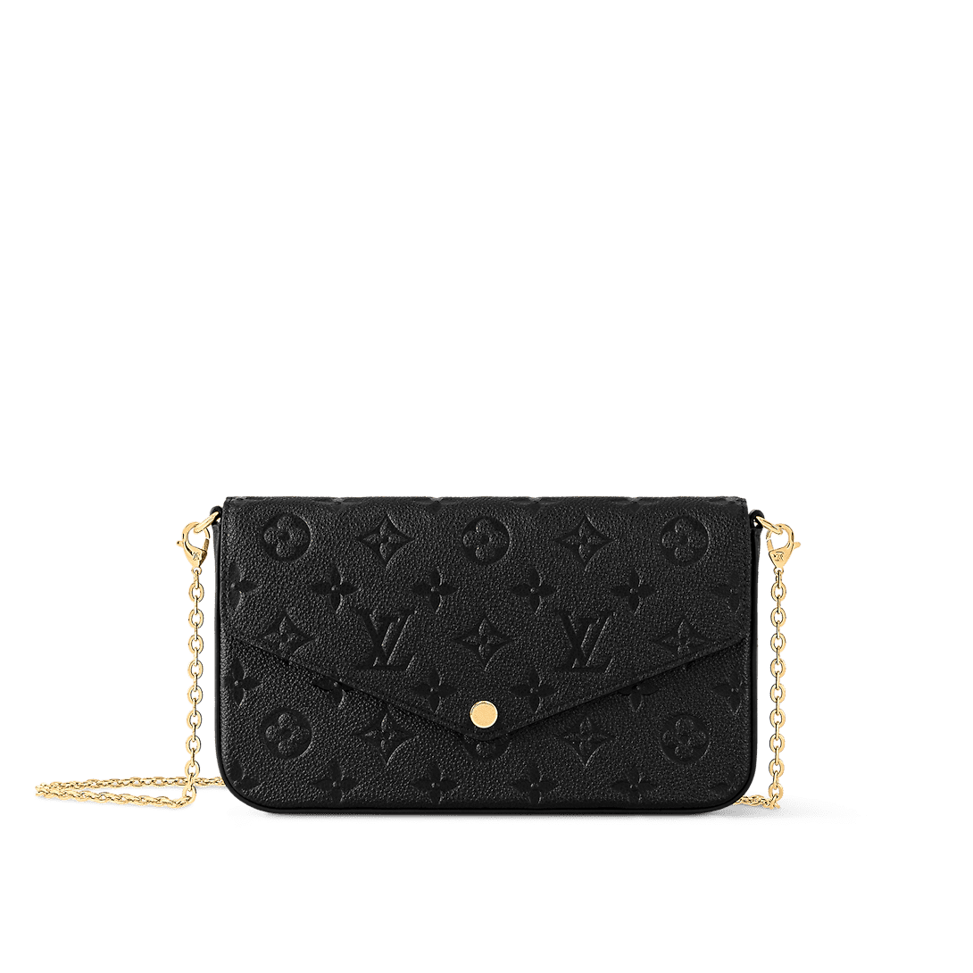 The Félicie Pochette is crafted from Monogram Empreinte leather, embossed with Louis Vuitton's signature Monogram pattern. Designed to adapt to modern lifestyles, this envelope-style pouch contains a spacious compartment with two removable pockets: one zipped, one with card slots. It can also be carried in different ways thanks to a removable chain.