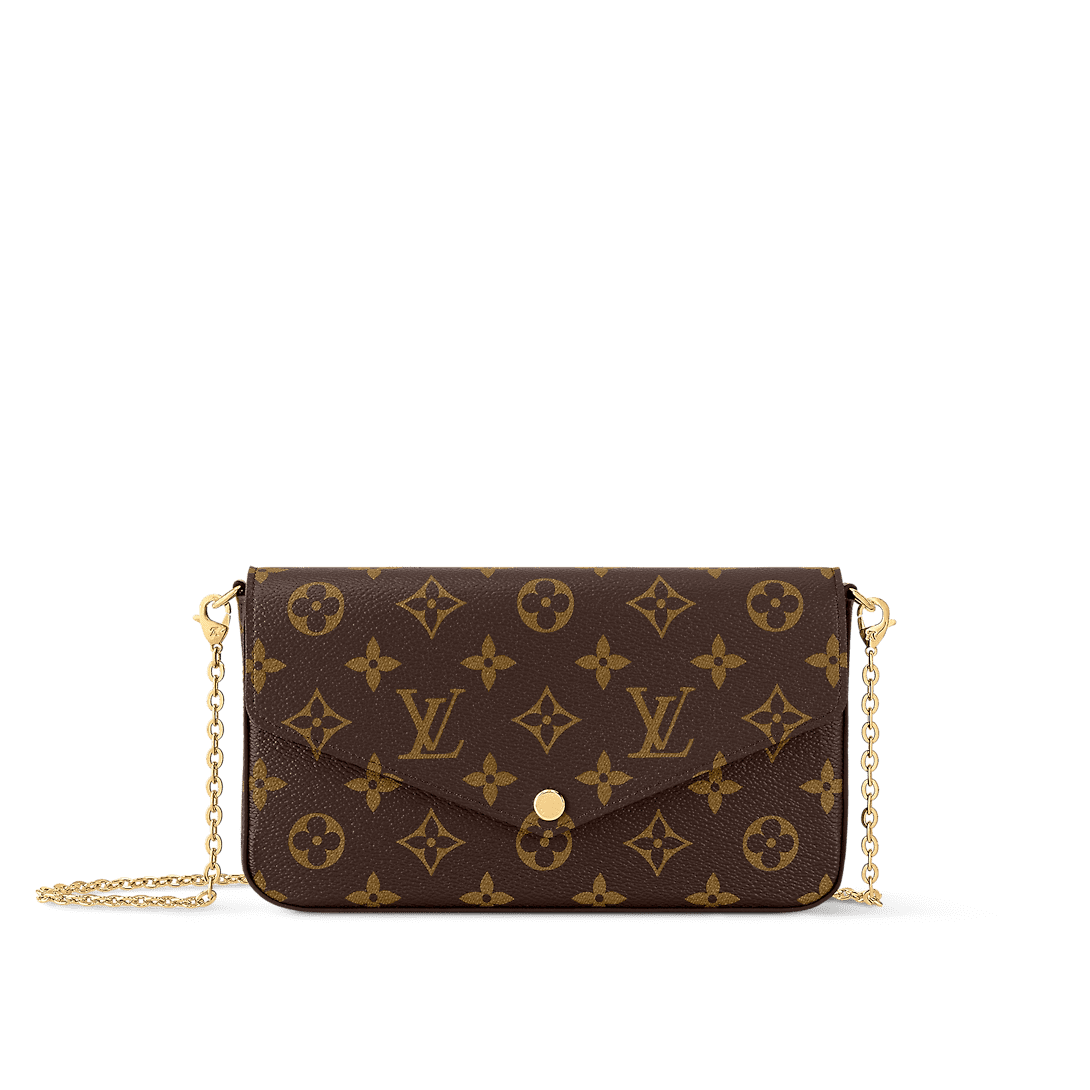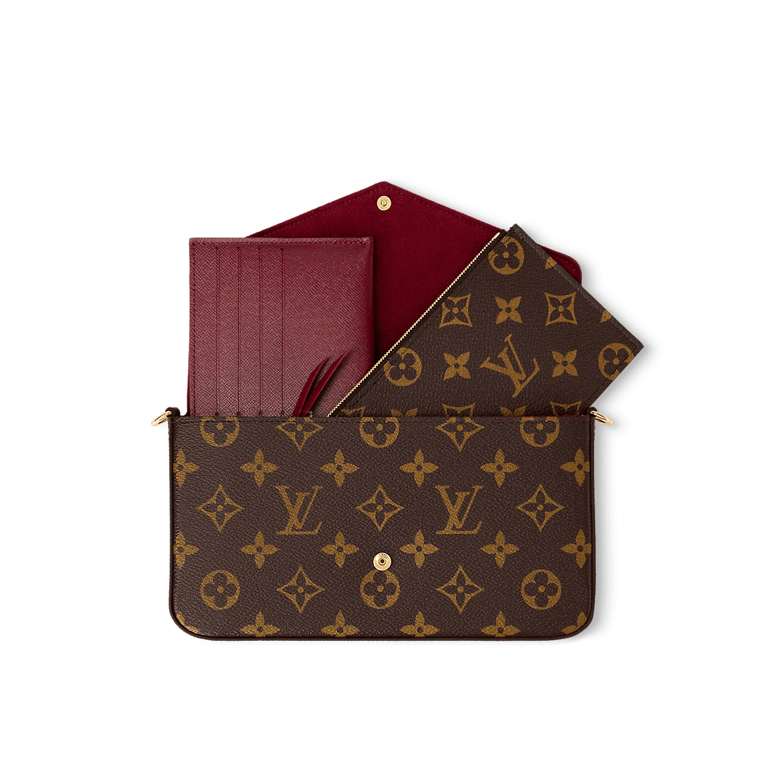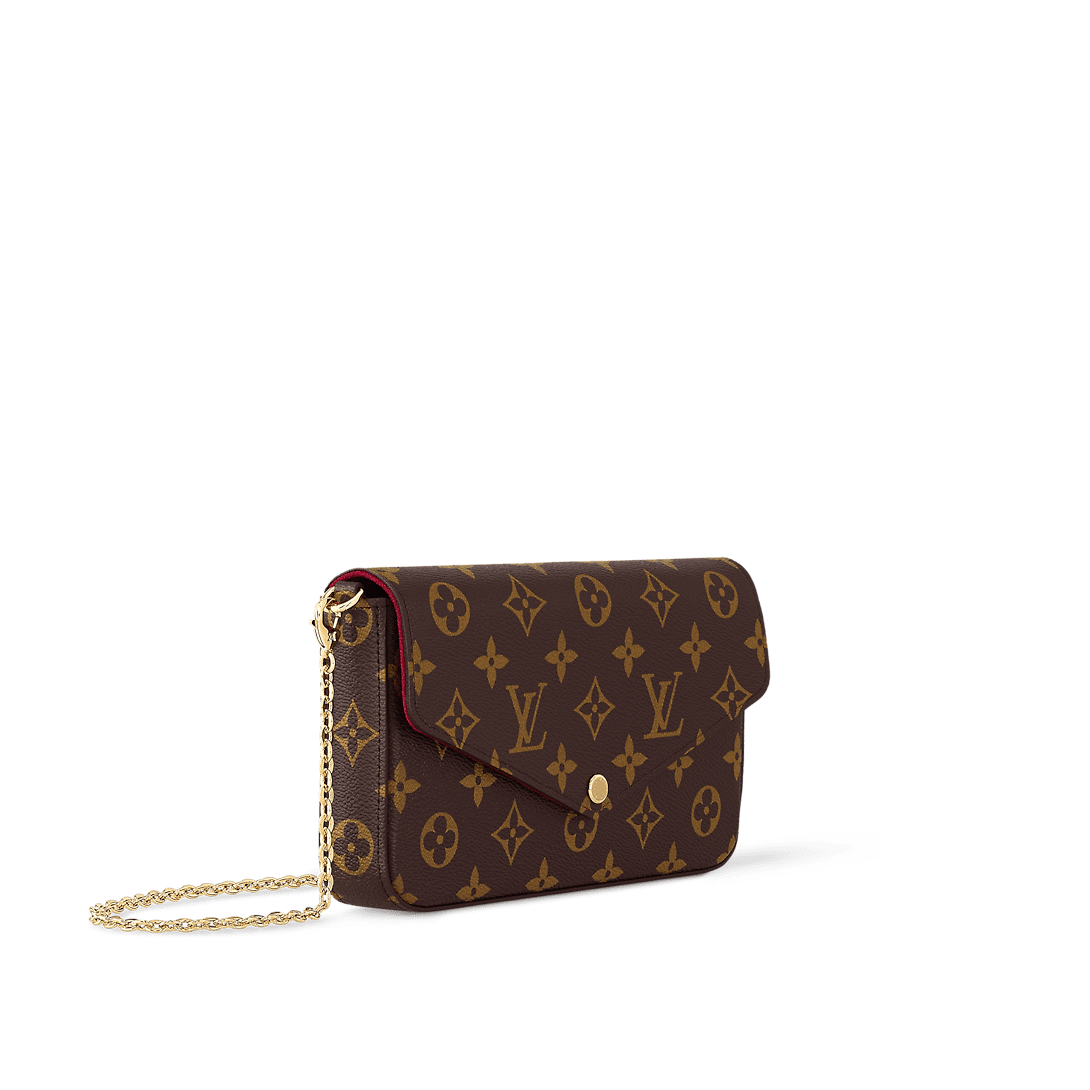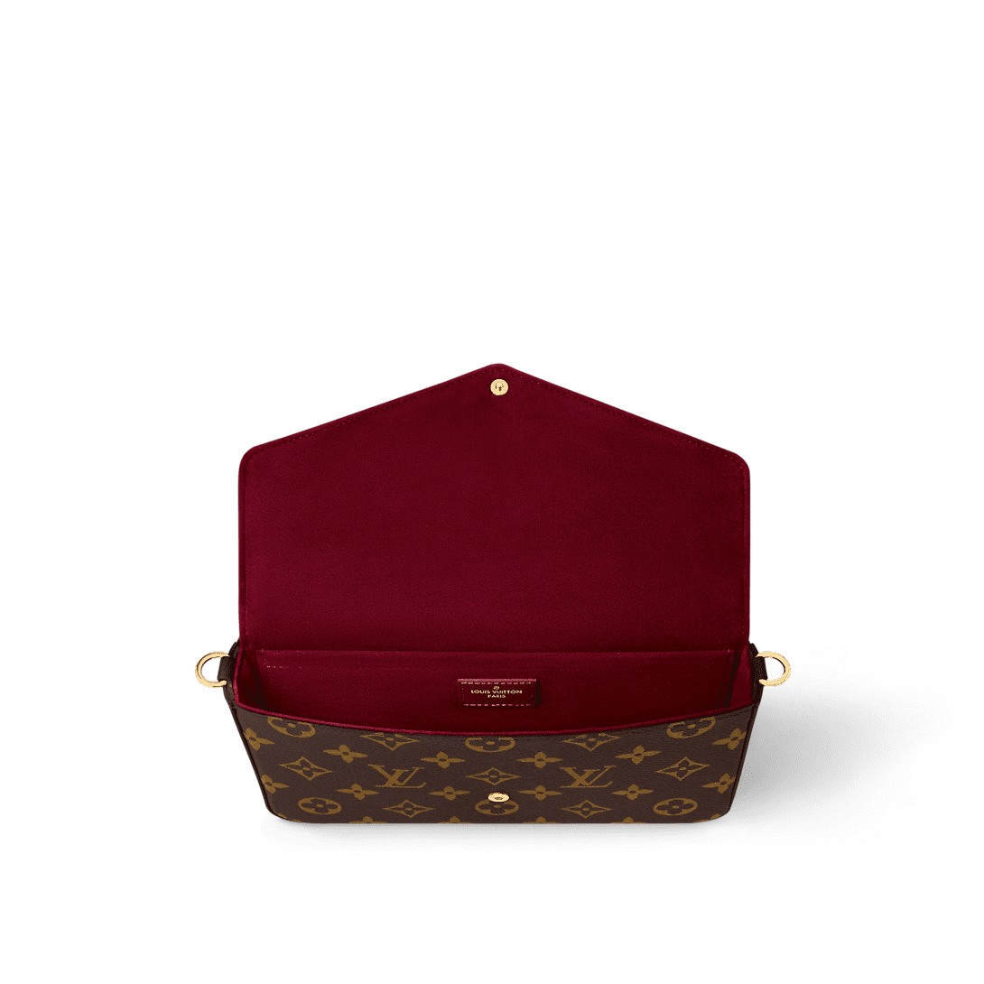 The versatile Félicie Pochette flap pouch is fashioned from Monogram canvas and lined in fuchsia microfiber. Inside there are two removable pockets: a zipped pocket and a flat pocket with eight card slots. The removable gold-color metallic chain enables shoulder and cross-body carry. The Félicie closes with a press-stud.