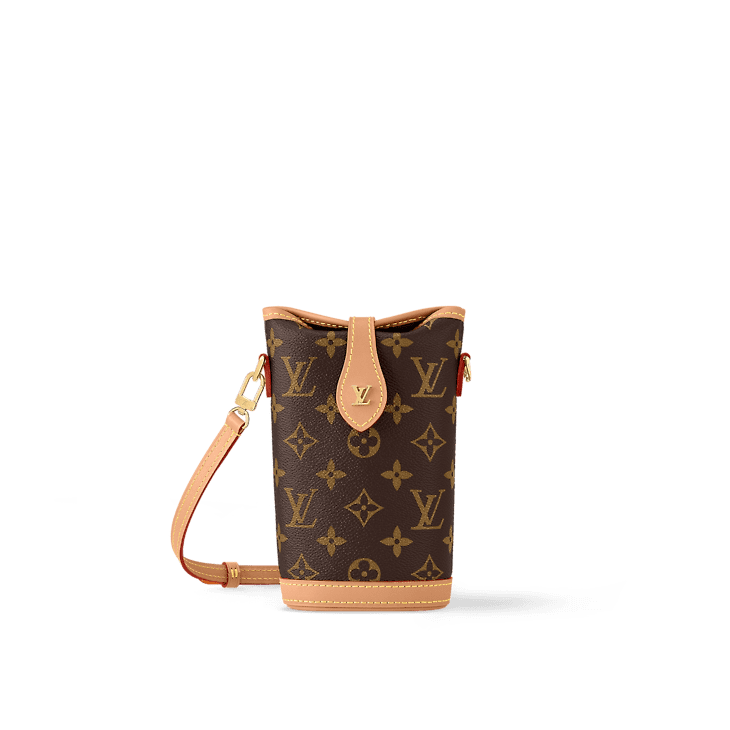 The Fold Me pouch in Monogram canvas and natural cowhide leather combines a vintage aesthetic with an on-trend functionality. Its design contrasts an oval base with a rectangular body, finishing with a folding, magnetic closure. Though small in size, it is large enough to hold everyday essentials, while its removable, adjustable leather strap offers different carry options.