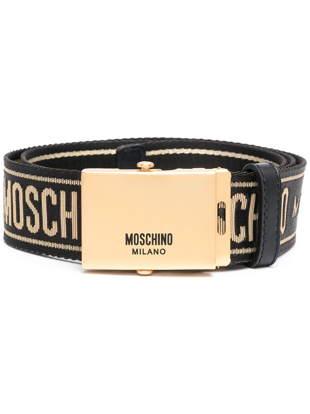 Finish your look with style. Put on this black and gold-tone grosgrain logo belt and you're ready to conquer the world. Buckle up.
