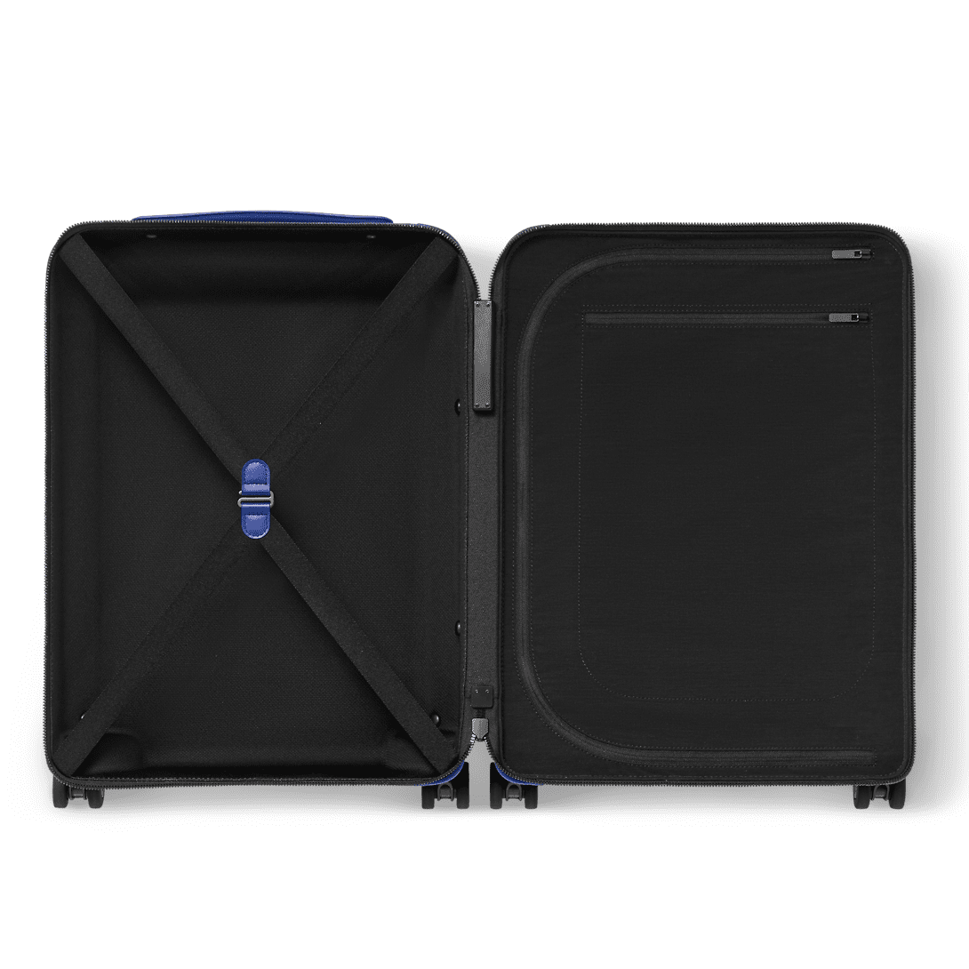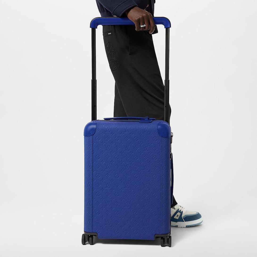 Fashioned from Taurillon cowhide leather embossed with the Monogram motif, the lines of this Horizon 55 rolling hardcase are emphasized by the matte-black color of the wide external cane. This practical carry-on bag has compact double-wheels to ensure smooth and comfortable rolling. The reinforced corners are in tone-on-tone cowhide leather.