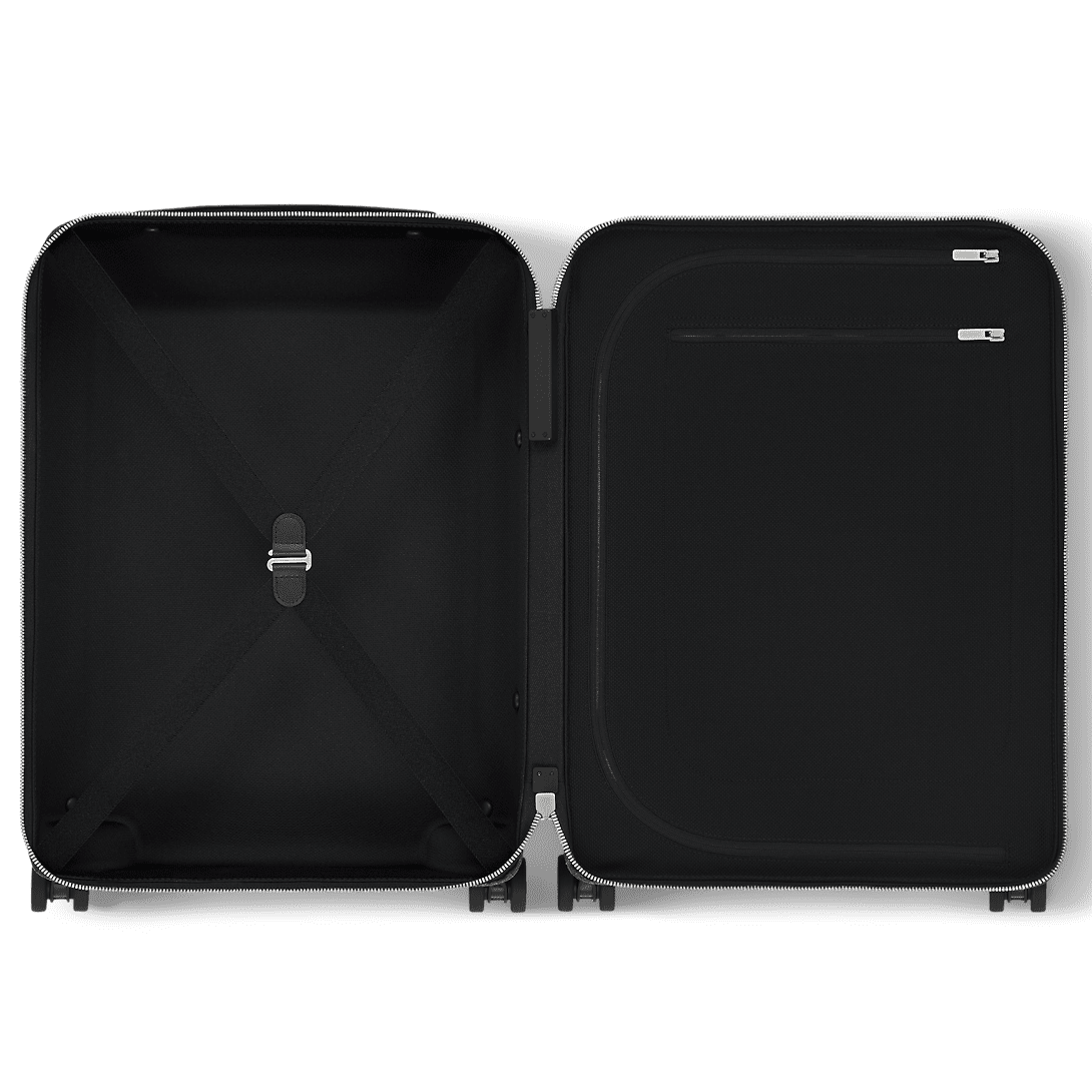 Business suitcase in masculine Monogram Eclipse canvas features a zipped front pocket. This pocket will meet the needs of travelers who like to keep things organized while on the road. It is a convenient place to carry a laptop, magazines, and other essential travel items.