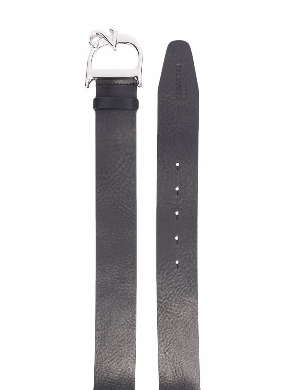 black/silver leather adjustable fit silver-tone hardware logo-buckle fastening punched holes