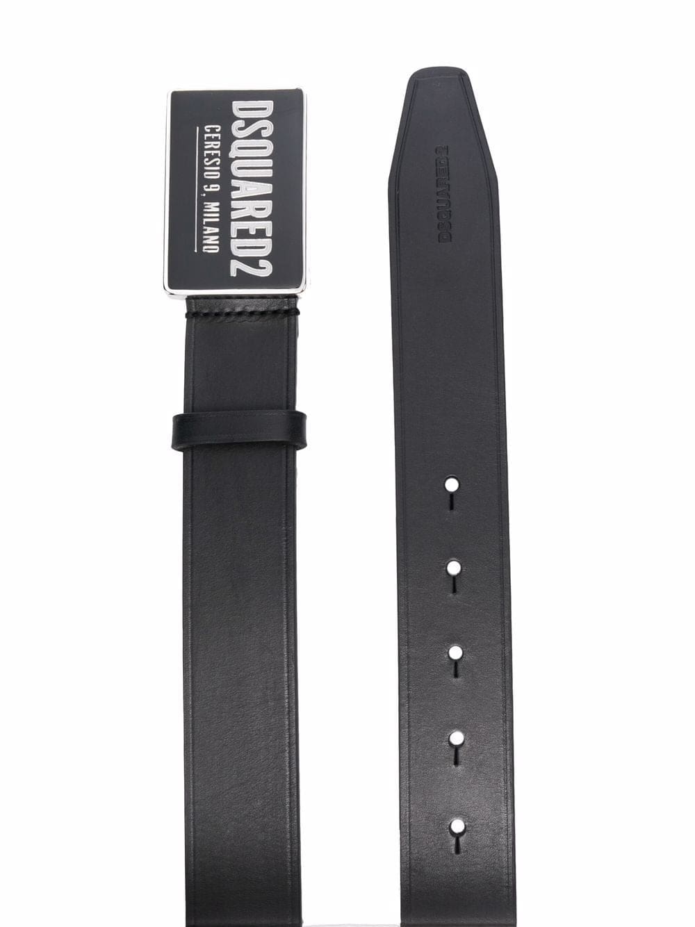black leather logo buckle fastening silver-tone hardware adjustable fit