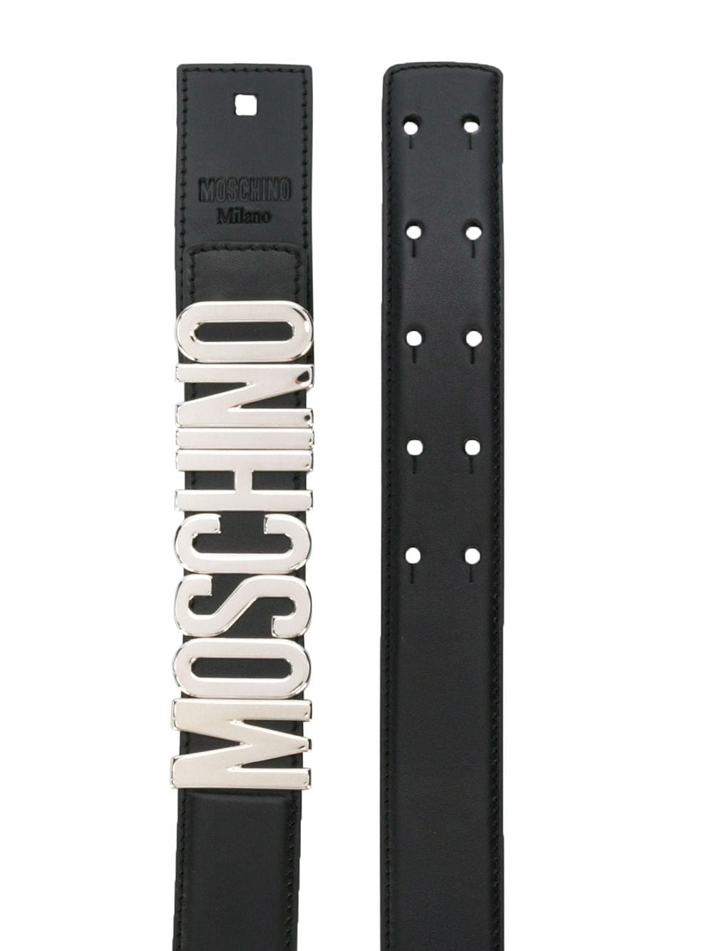 The Moschino collection is characterised by a rebellious attitude, a youthful aesthetic and iconic logos as showcased in this black leather logo plaque belt. Featuring a silver-tone logo plaque and an adjustable fit.