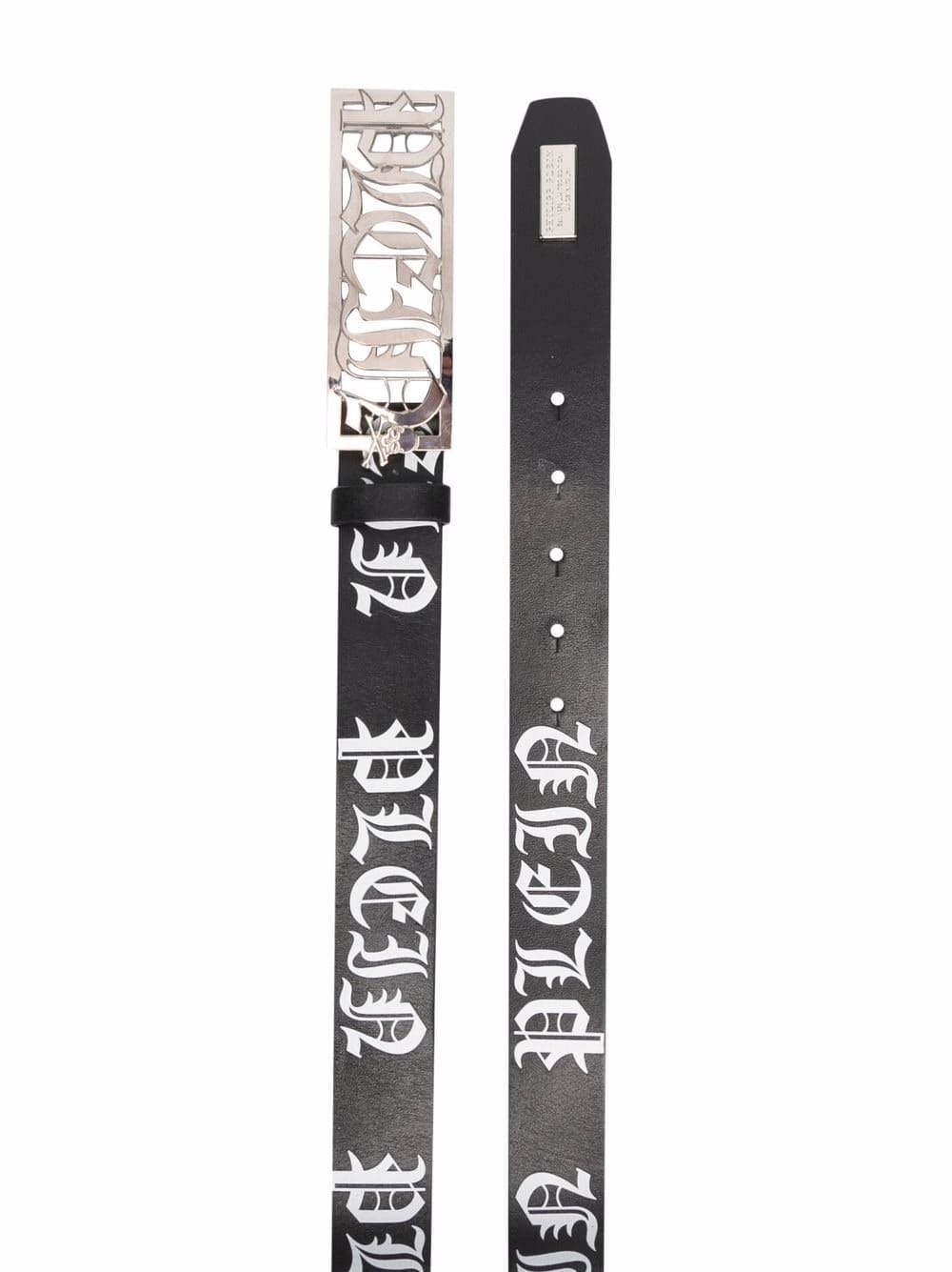 black/white calf leather silver-tone logo plaque logo print embellishment punched holes adjustable fit