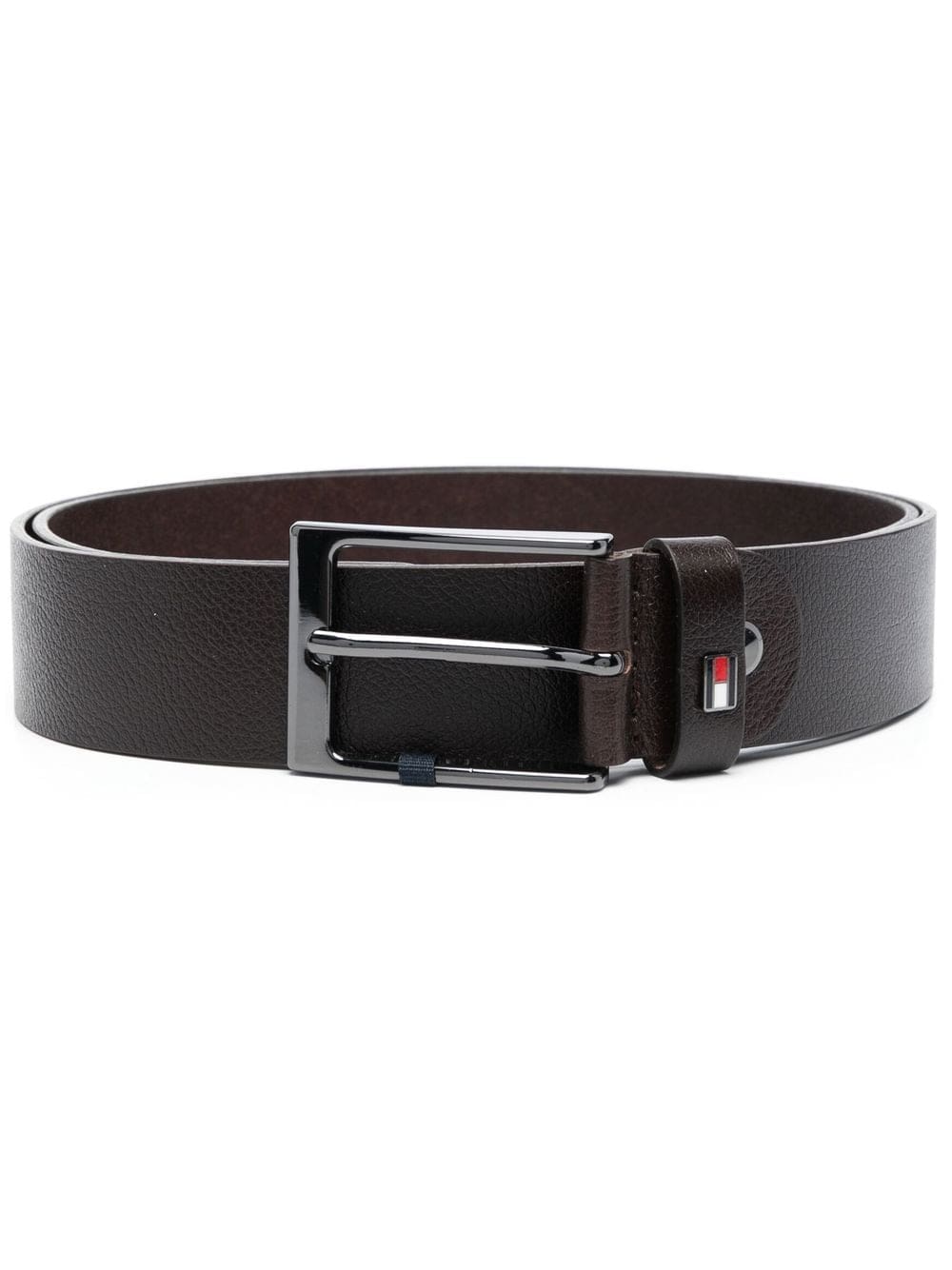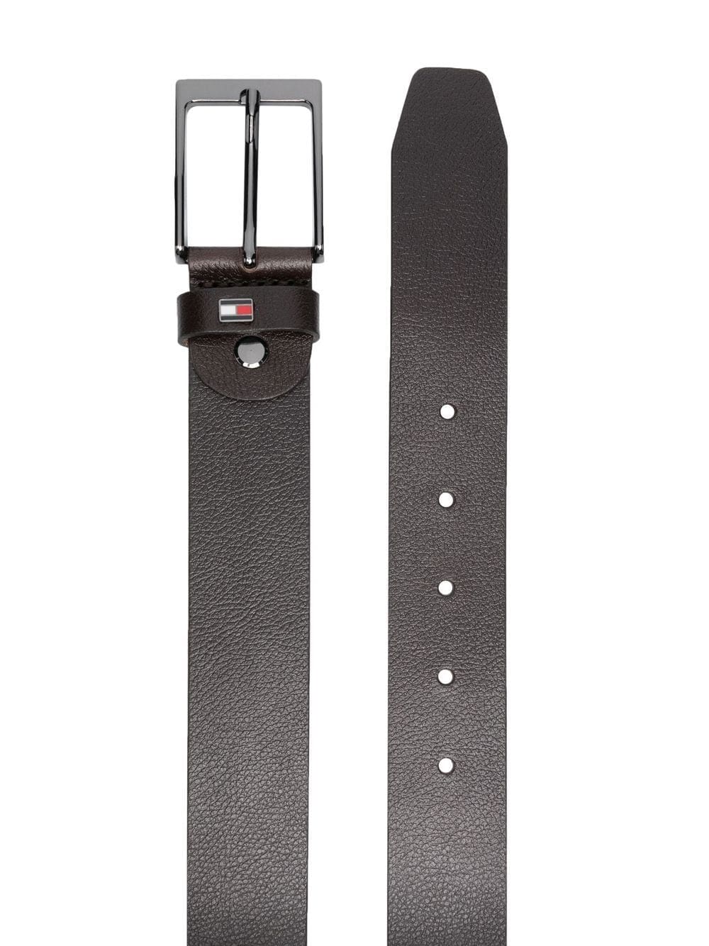 brown calf leather smooth grain logo plaque silver-tone hardware punch-hole detailing buckle fastening