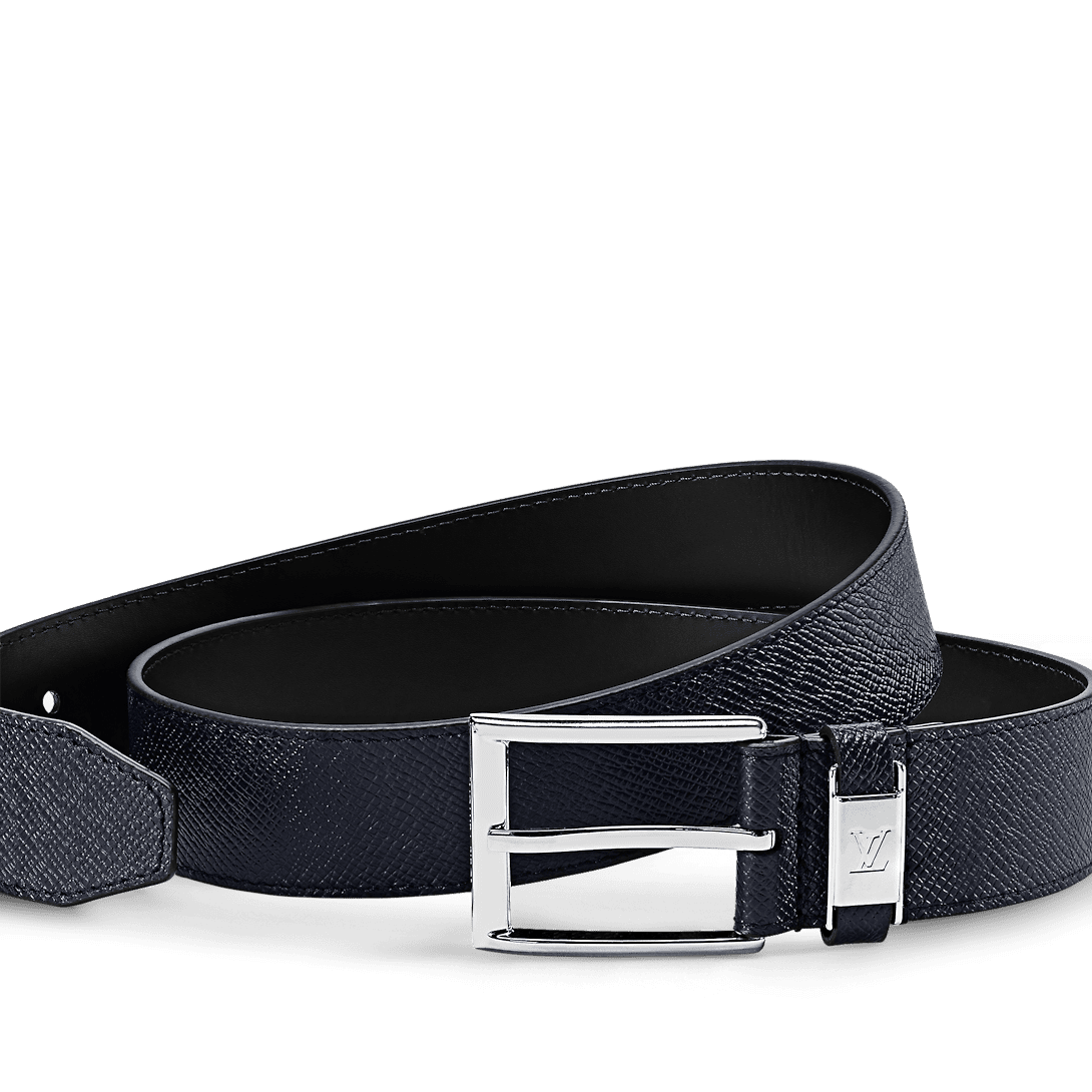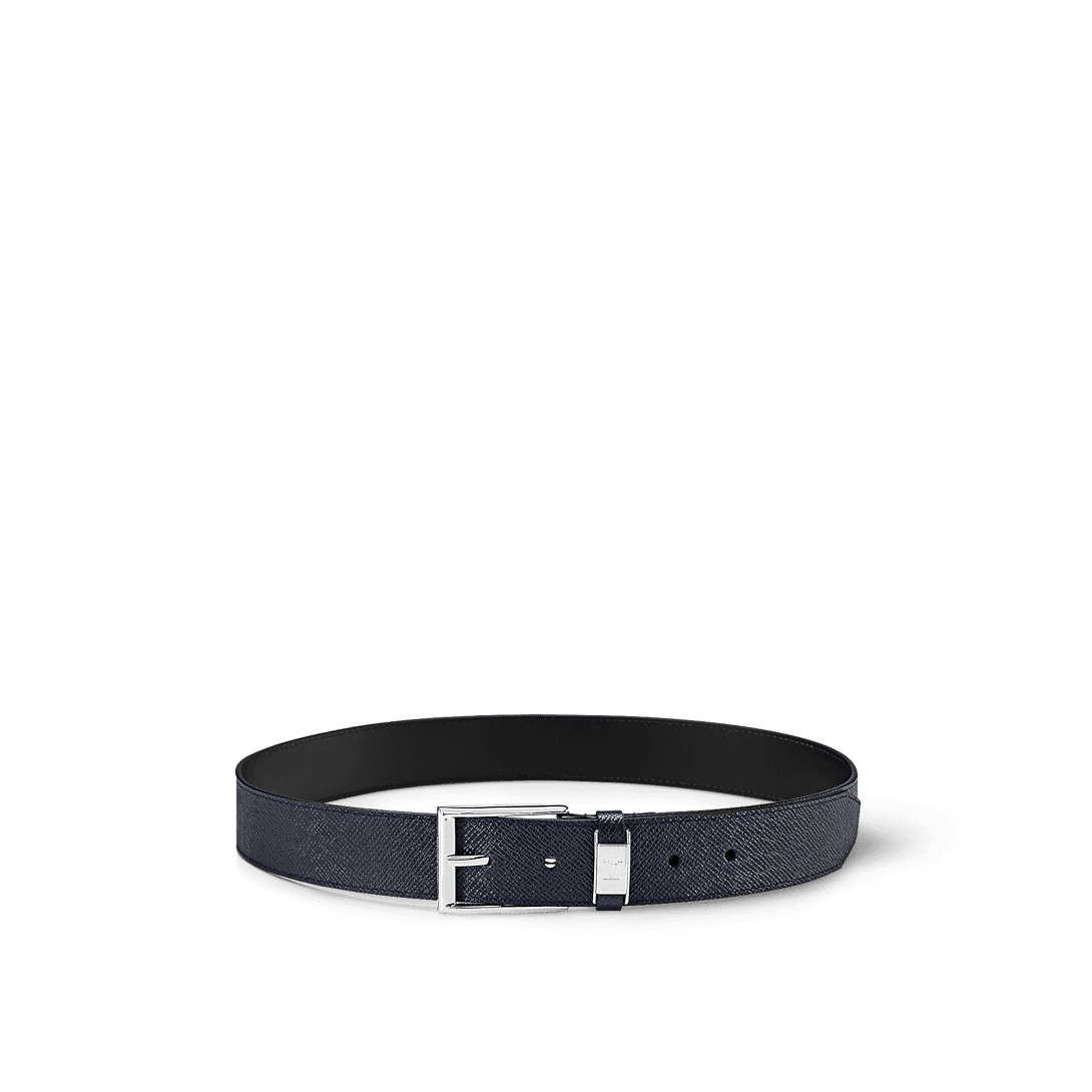 Edited in deep blue Taïga leather, the LV City Pin 35mm Belt presents a sleek, minimalist aesthetic. The slim strap is secured by a sleek LV City Pin buckle and keeper loop, both forged from silver-colour finish metal and polished to a high gleam. In addition, the loop is impeccably engraved with the House's LV logo for a distinguished signature touch.
