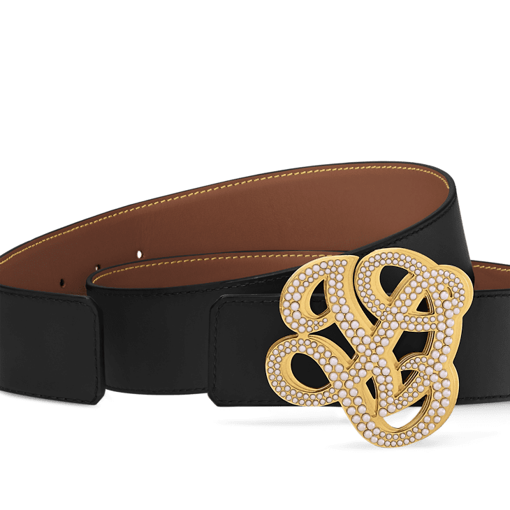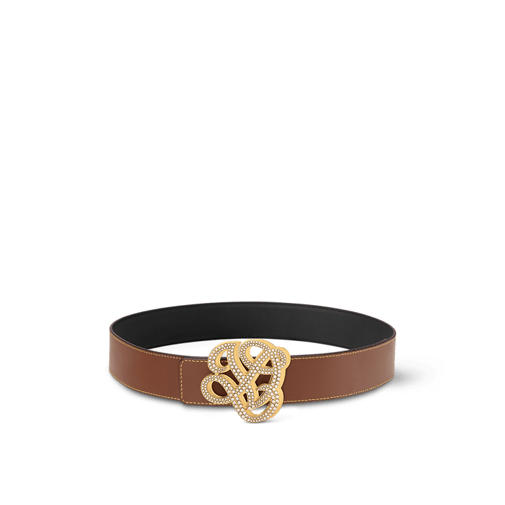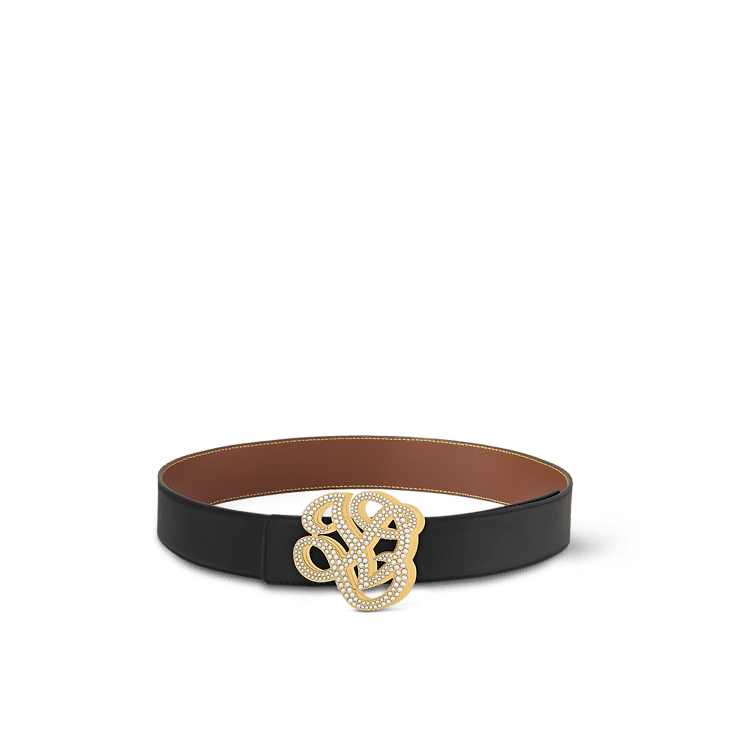 Seen at Pharrell Williams’s debut Men’s Show for Louis Vuitton, the LV Dynasty 40mm Reversible Belt showcases the House's fine craftsmanship. The double-sided leather strap reverses from black to brown. The new LV Dynasty buckle secures the piece. It is made from gold-tone metal hand-set with clear and coloured zircons to add sparkle to any silhouette.