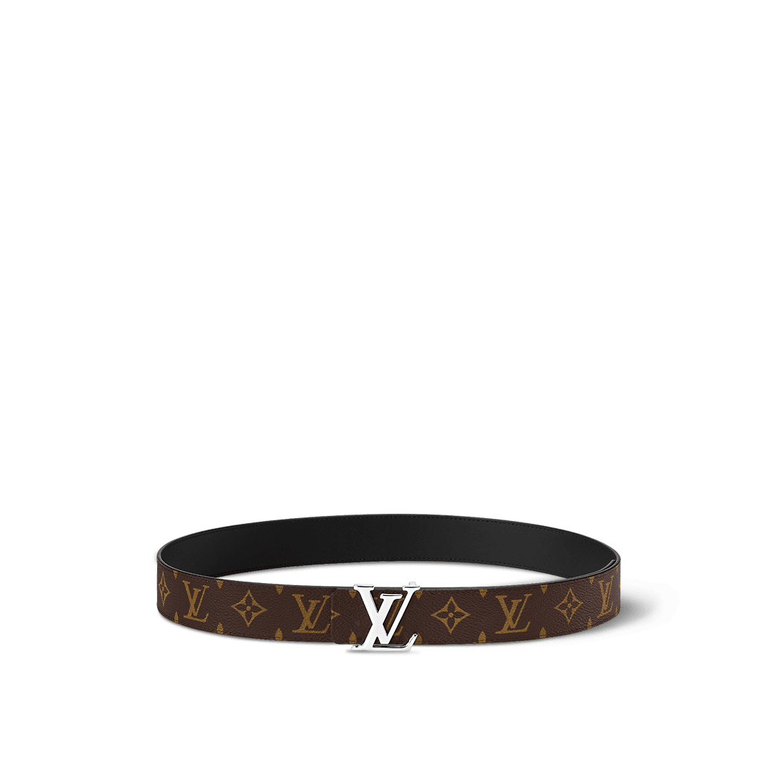 The LV Initials 35mm reversible belt highlights House craftsmanship with its modern, double-sided strap and iconic buckle. Monogram canvas reverses to smooth black calf leather, for a versatile accessory that will enhance both off-duty and business attire. The piece is handsomely offset by a signature LV Initials buckle, cast from polished, palladium-finish metal.