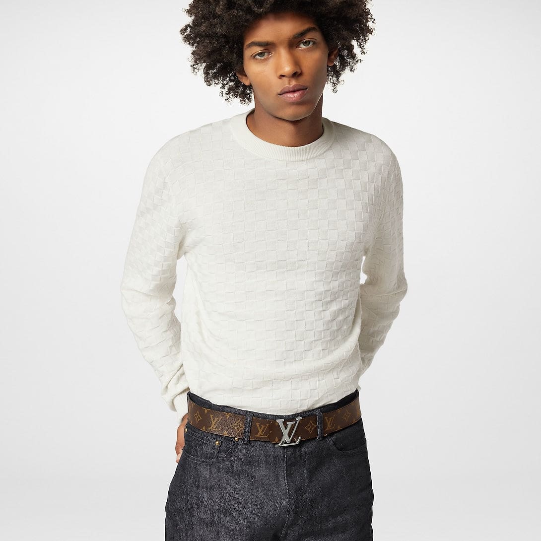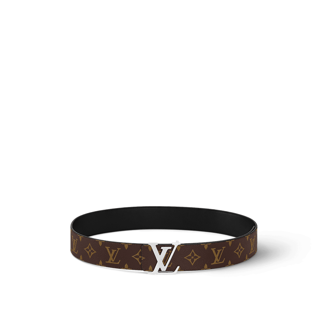 The LV Initials 40 is extended in a new reversible version in Monogram with a silvery finishing buckle, using the same codes as on the Monogram Macassar leather goods from the Fall/Winter 2009 men's show. It can be worn casually with jeans or reversed for business.