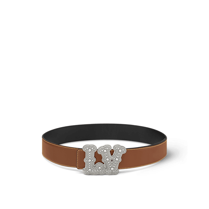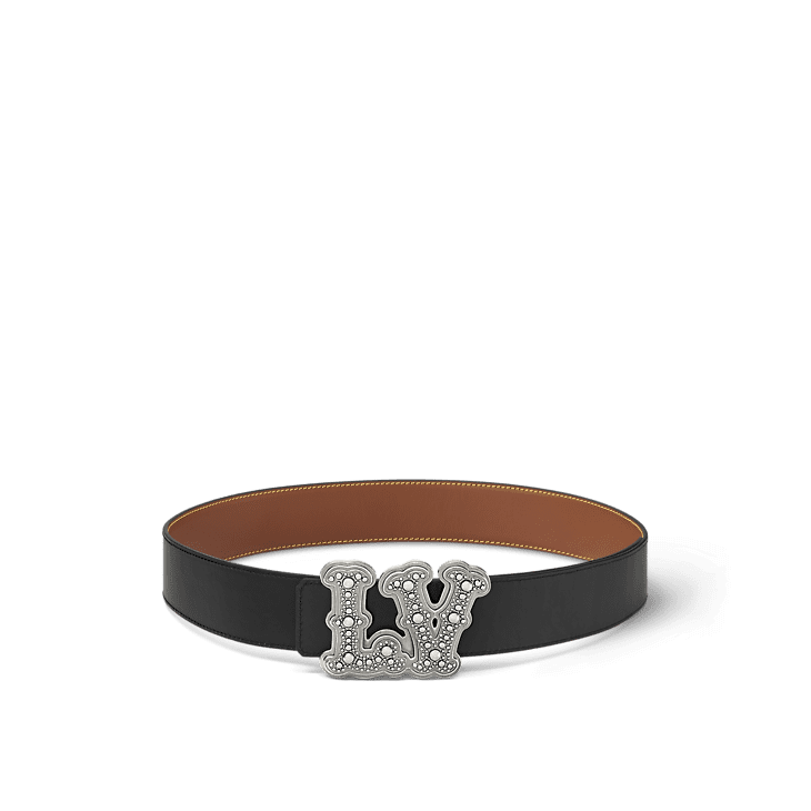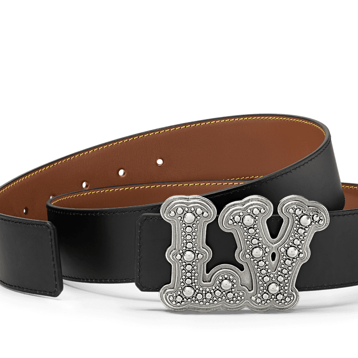 A show-stopping addition to the stylish man’s wardrobe, the LV Ranch Studs 40mm Reversible Belt is composed of a two-sided black calf leather strap and the new LV Ranch Studs buckle. The Western-style LV Initials are decorated with fancy metalwork and patinaed with an aged silver-colour finish. A fashion-forward accessory for tailored or casual looks.