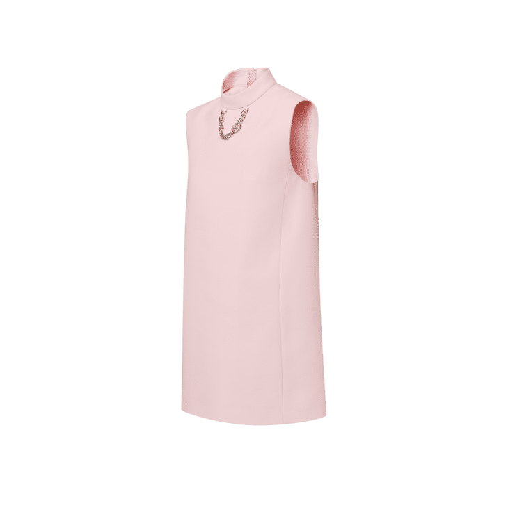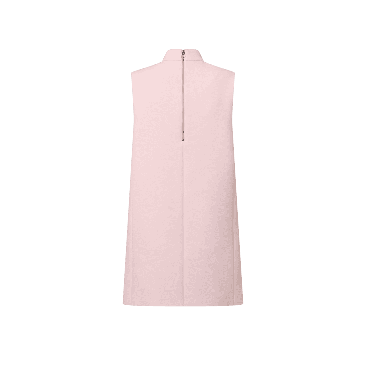Drawing on the fantastical mermaid-inspired silhouettes seen on the runway, this dress makes an elegant eveningwear statement. The top is cut from a richly textured jacquard with a V-neckline and slim straps, while the sweeping ankle-length skirt is highlighted with horizontal silk chiffon flounces and trimmed with structured tiered bands that add sculptural volume to the hemline.